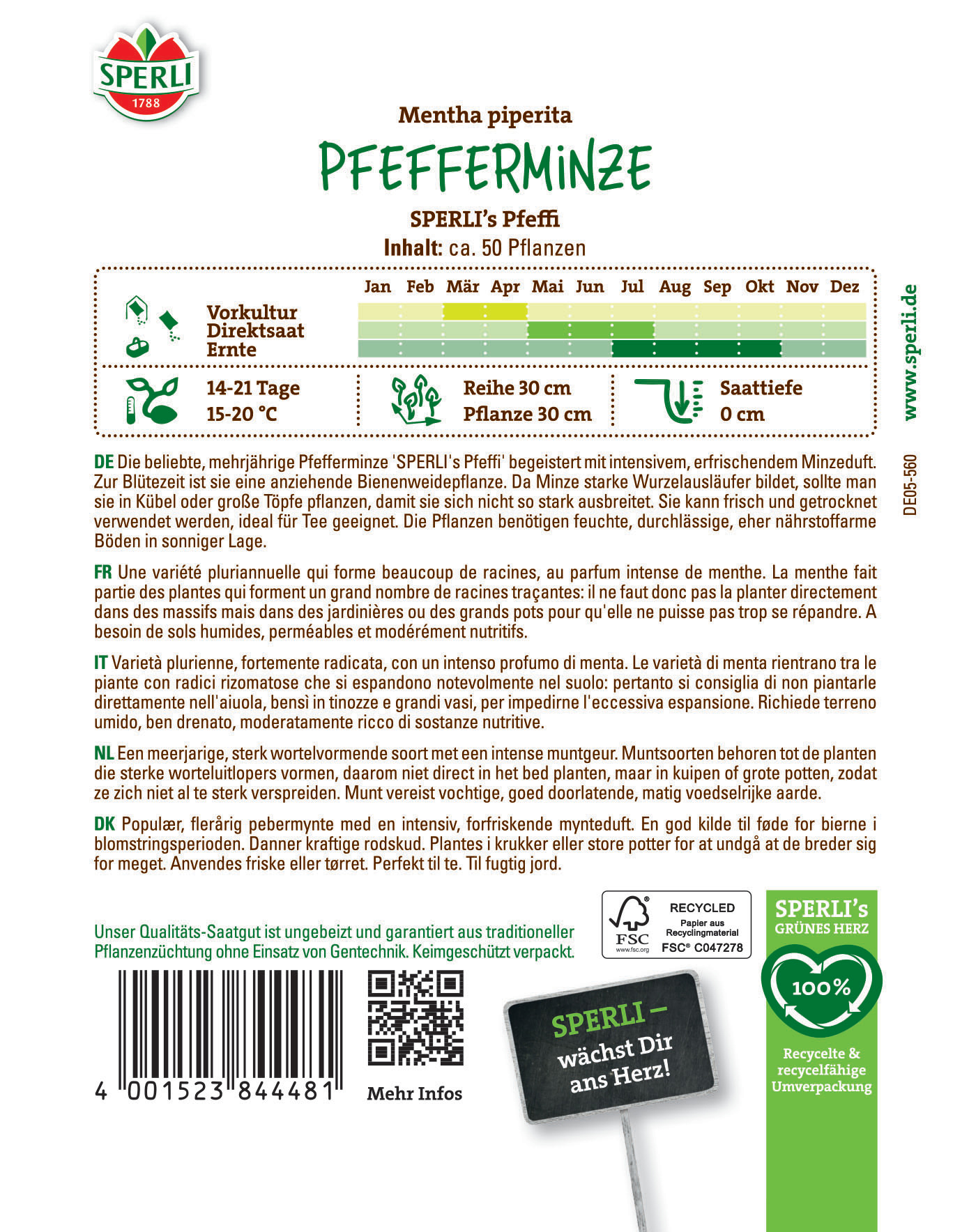 | Kurzbezeichnung : | Pfefferminze SPERLI's Pfeffi |