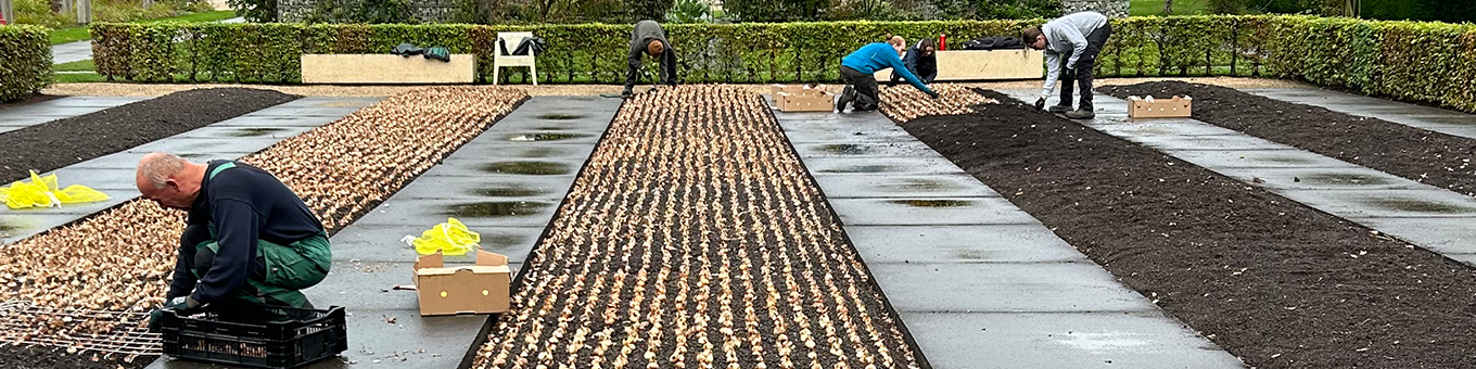 Derzeit ist eine Sortenschau mit beeindruckenden 110 verschiedenen Narzissen von Kiepenkerl in der Realisierung. Die Schau erstreckt sich über fünf Beete, jedes 23 Meter lang und 1,80 Meter breit. In präzisen 1-Meter-Streifen wurden insgesamt 22.000 Zwiebeln gepflanzt, um ein extravagantes Farbspiel zu schaffen, das nicht nur Gartenfans begeistert. Auch die Profis können sich dann ab März von der Narzissen-Vielfalt für ihre Planungen inspirieren lassen. So lassen sich auf kleinstem Raum die unterschiedlichen Wuchshöhen, Blühzeitpunkte, Blütengrößen und -farben feststellen.