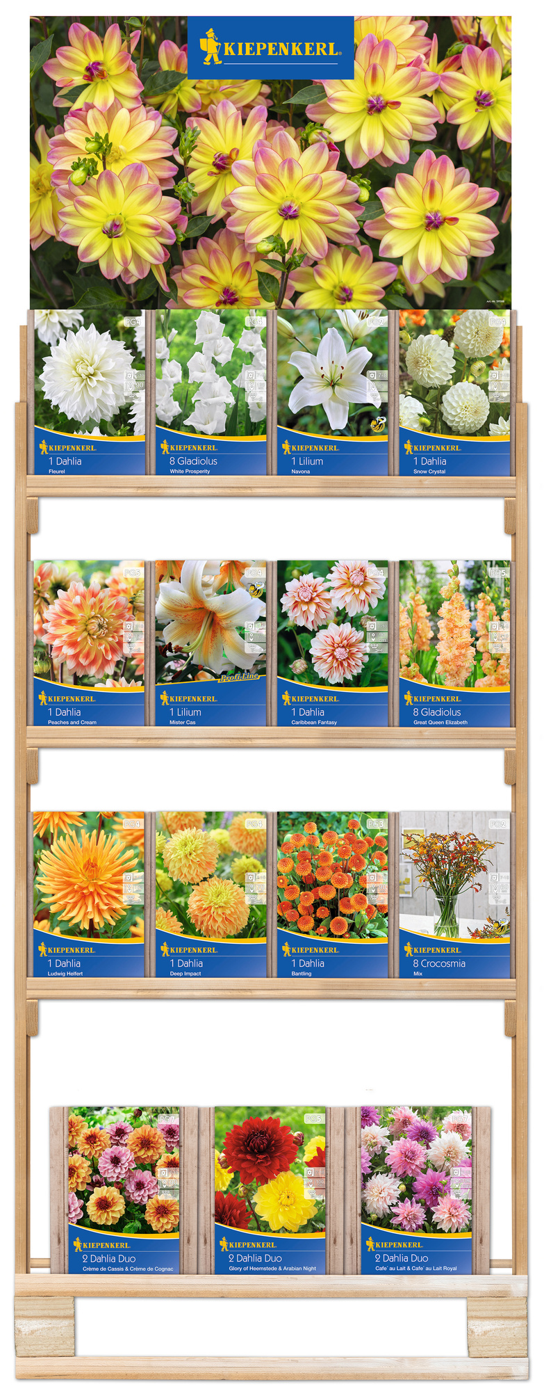 2026 - Frühjahr - Kiepenkerl-Blumenzwiebeln Slowflower - Schnittblumen' Halbpaletten-Regal besteht aus: