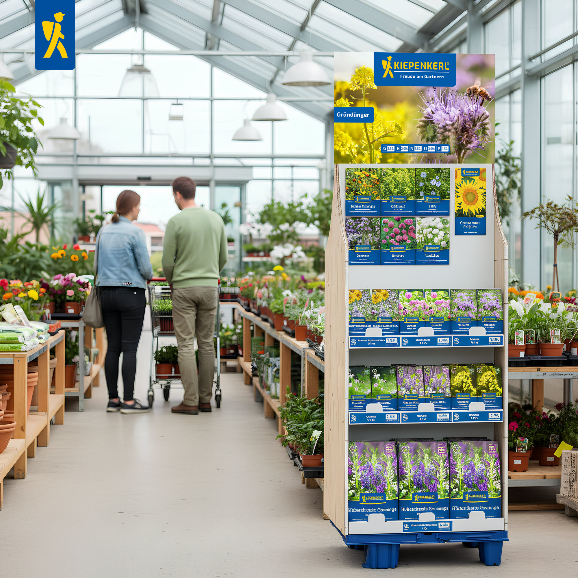 Erweitern Sie Ihr Bodenpflege-Sortiment mit dem Kiepenkerl Gründünger Karton-Etagen-Display und bieten Sie Ihren Kundinnen und Kunden eine professionelle, nachhaltige Lösung für gesunde Böden.