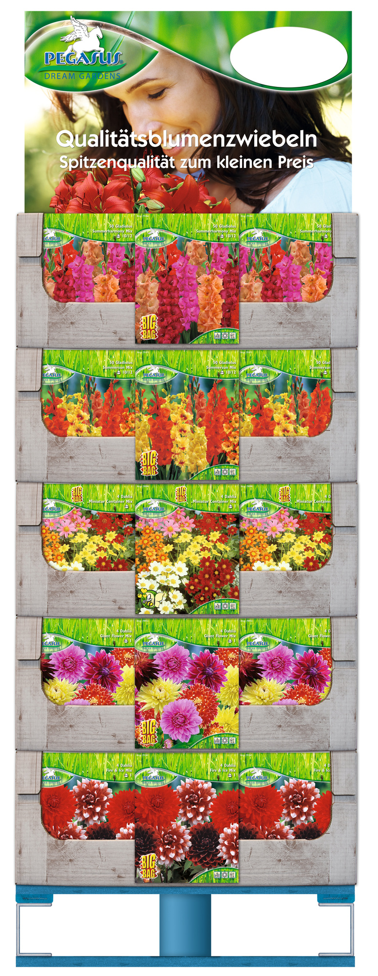 Produktinformationen "Blumenzwiebeln in BigBags im Stapelkarton-Display von Pegasus"