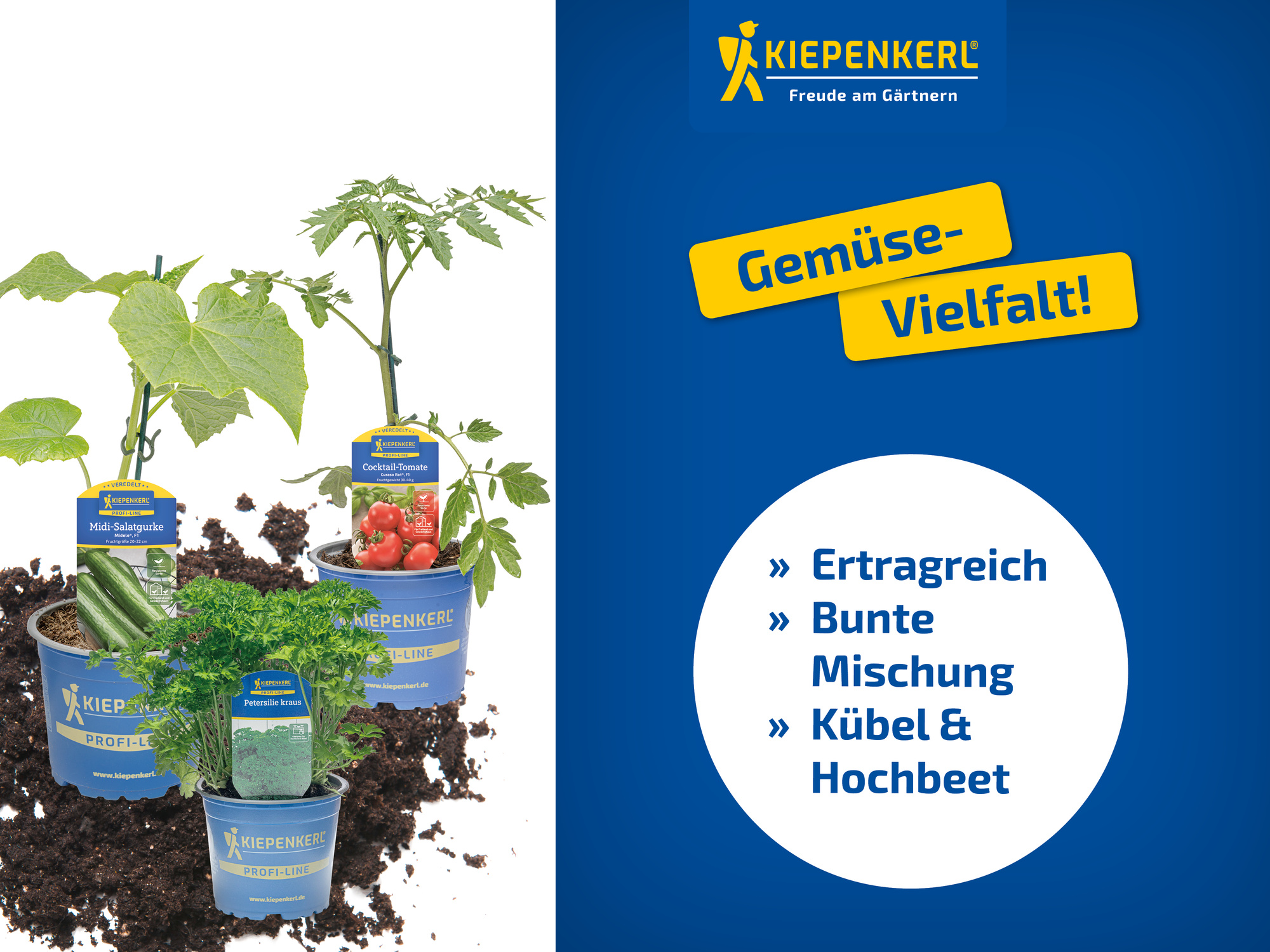 Der Garten & Hochbeet Starter II vereint zwei starke Sortimente auf einem CC: bekannte Kiepenkerl Kräuter und eine erste Auswahl veredelter Gemüsepflanzen. Damit bietet das Konzept eine hohe Sortimentsbreite auf begrenzter Fläche und ermöglicht es, unterschiedliche Kundenbedürfnisse – von der Küche bis zum Gemüsegarten – mit einem einzigen Artikel abzudecken.