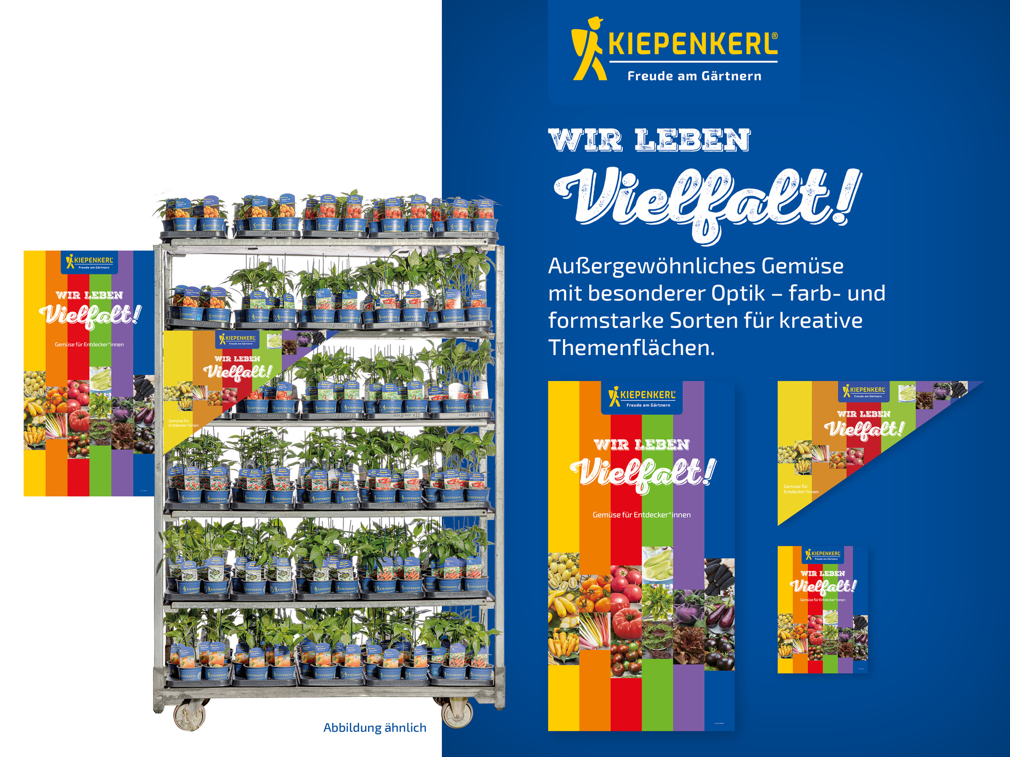 Setzen Sie optische Akzente in Ihrem Gemüseregal und nutzen Sie Wir leben Vielfalt – außergewöhnliches Gemüse zur Profilierung Ihres Sortiments.