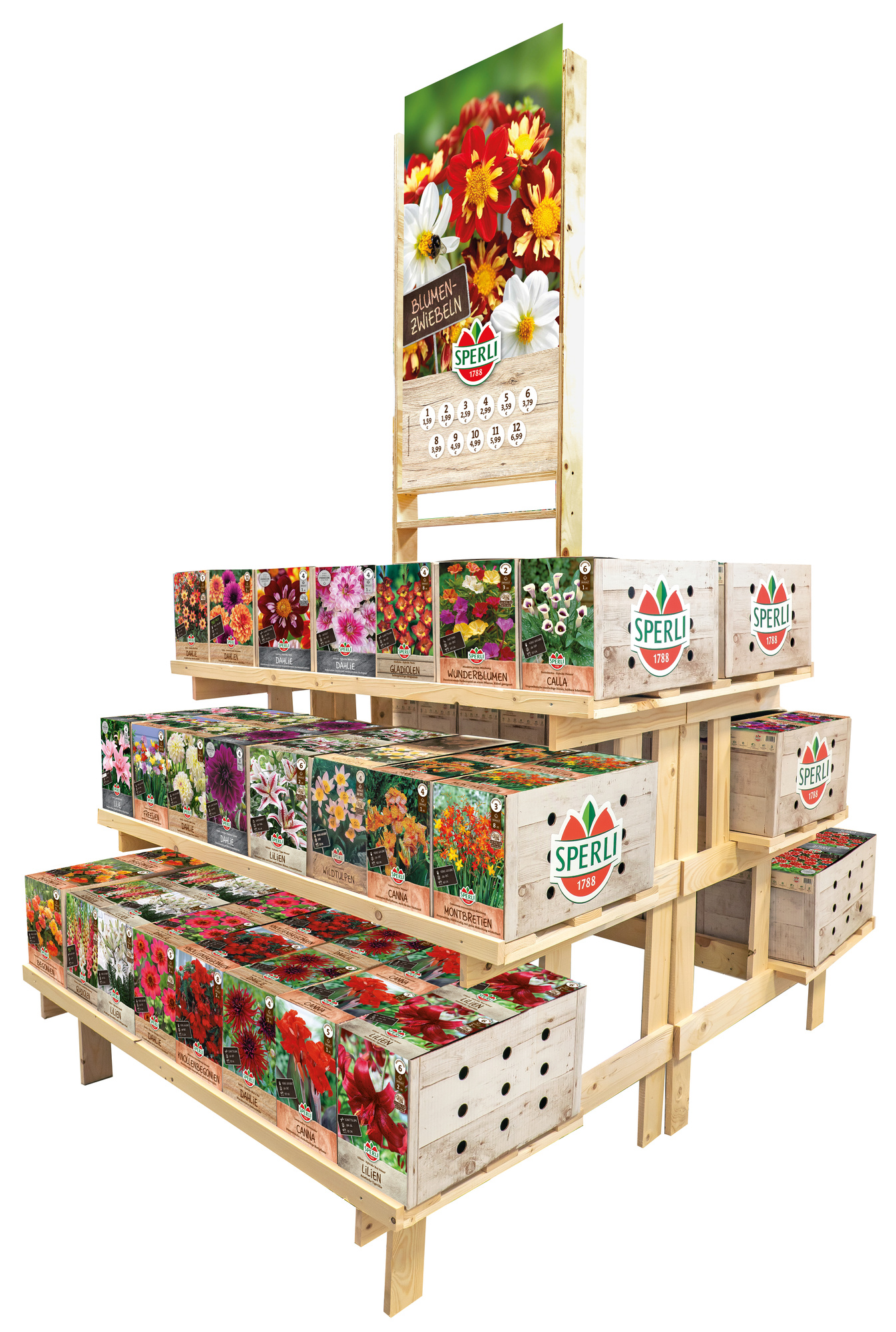 Diese Präsentation ist die hochwertigste und erfolgreichste Lösung für den stationären Verkauf von Blumenzwiebeln. Die zweiseitige Tribüne enthält das TOP-Sortiment an Sommer-Blumenzwiebeln unserer Marke SPERLI, inkl. Neuheiten, für deinen nachhaltigen Umsatzerfolg.| Kurzbezeichnung : | 2026 - Frühjahr - SPERLI Blumenzwiebeln 'Topseller & Neuheiten' auf zweiseitiger Tribüne |