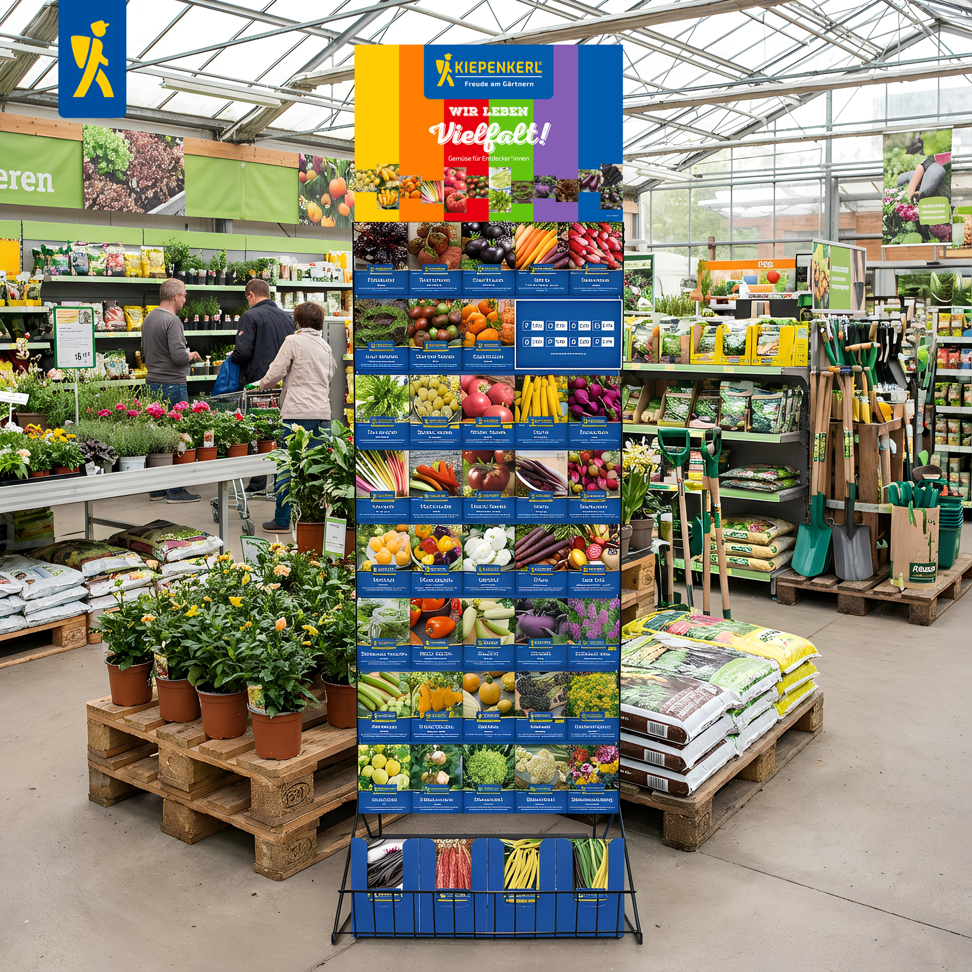 Hobbygärtnerinnen und Hobbygärtner sind auf der Suche nach spannenden Gartenprojekten und Inspiration für kreative Gestaltungsideen im eigenen Garten. Unter dem Motto „Wir leben Vielfalt! – Dein Garten, Dein Abenteuer!“ präsentiert dieser Themenständer ausgewählte, einzigartige und ausgefallene Saatgutsorten, die genau diesen Wunsch aufgreifen.