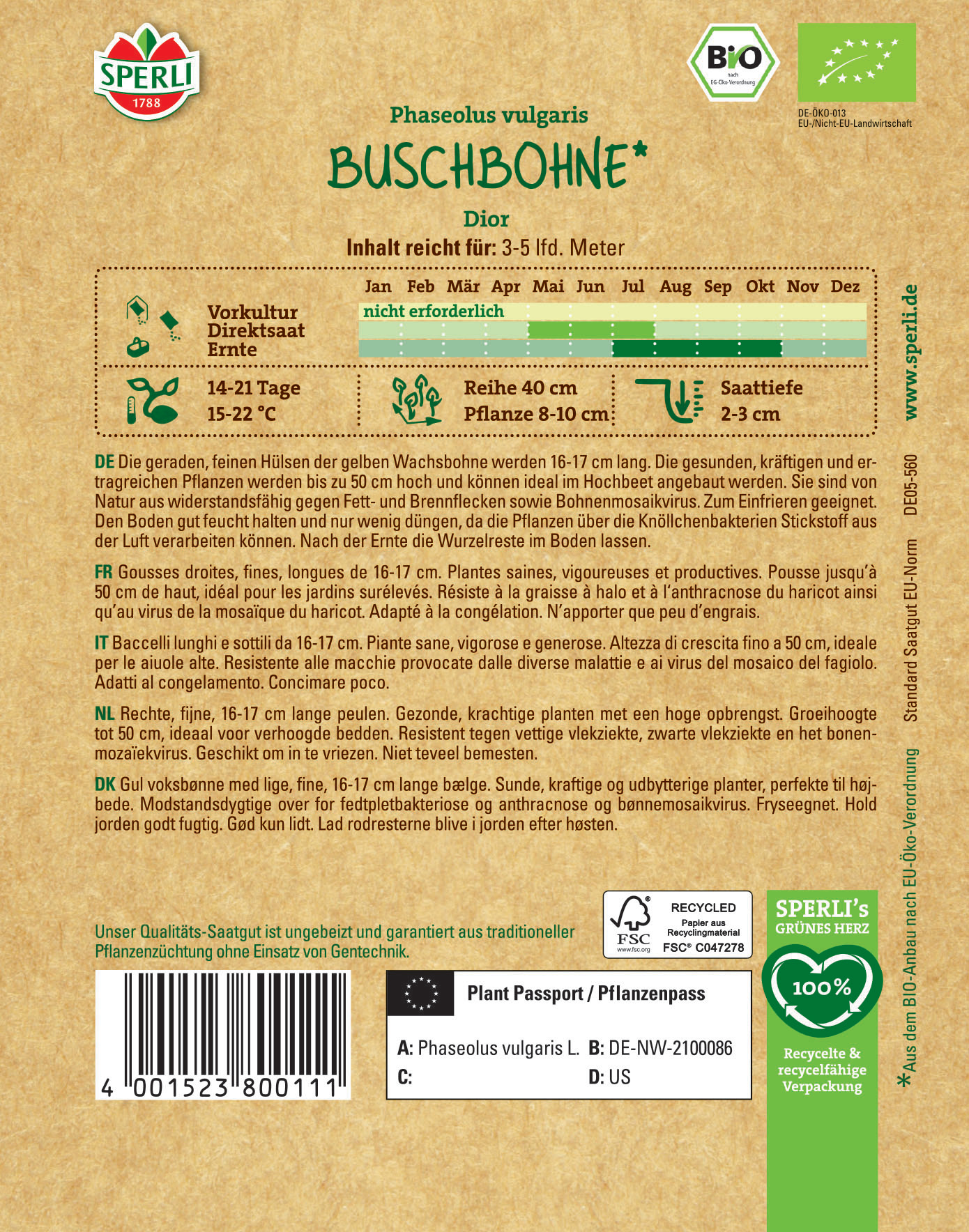 | Kurzbezeichnung : | BIO Buschbohne Dior |
