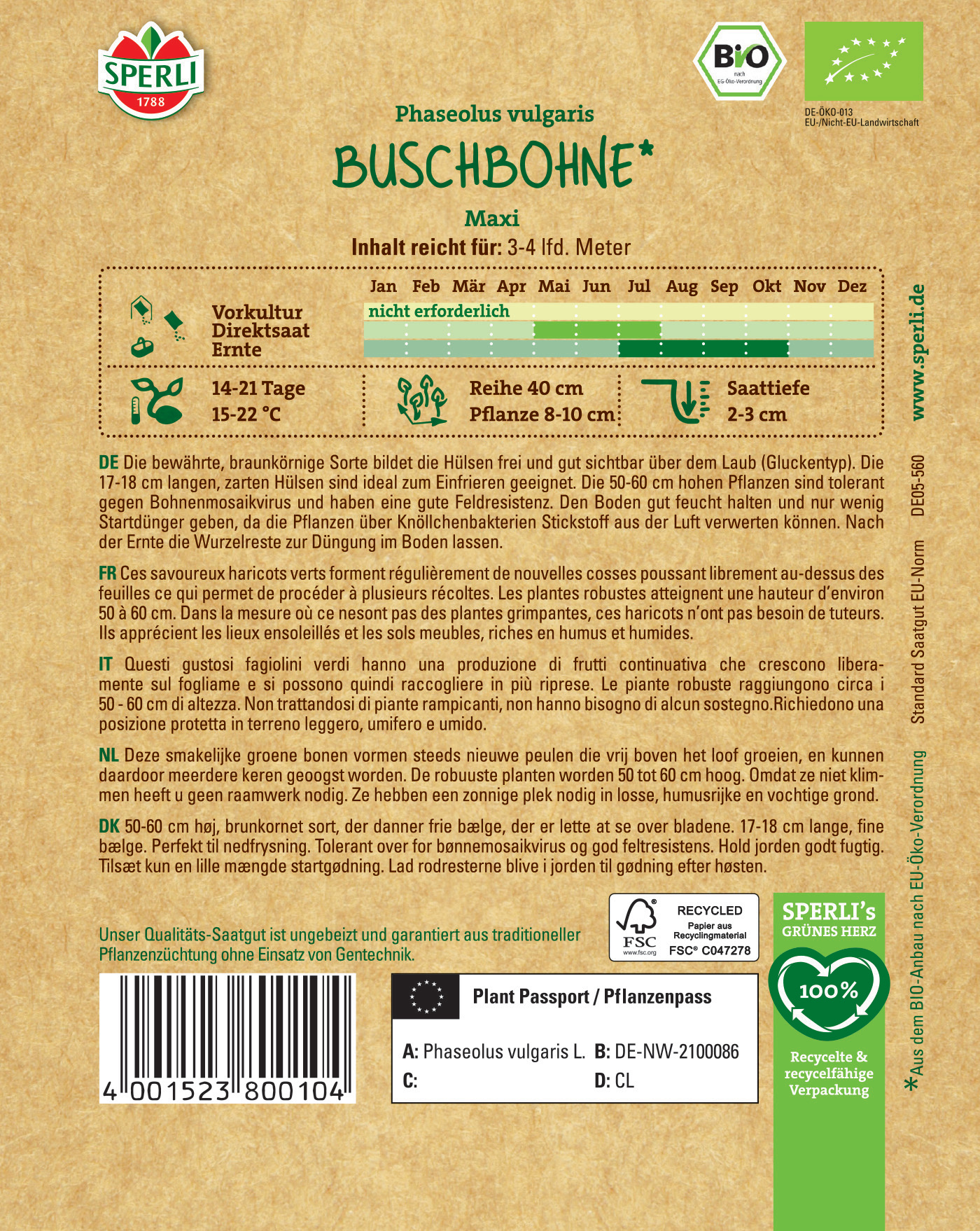 | Kurzbezeichnung : | BIO Buschbohne Maxi |