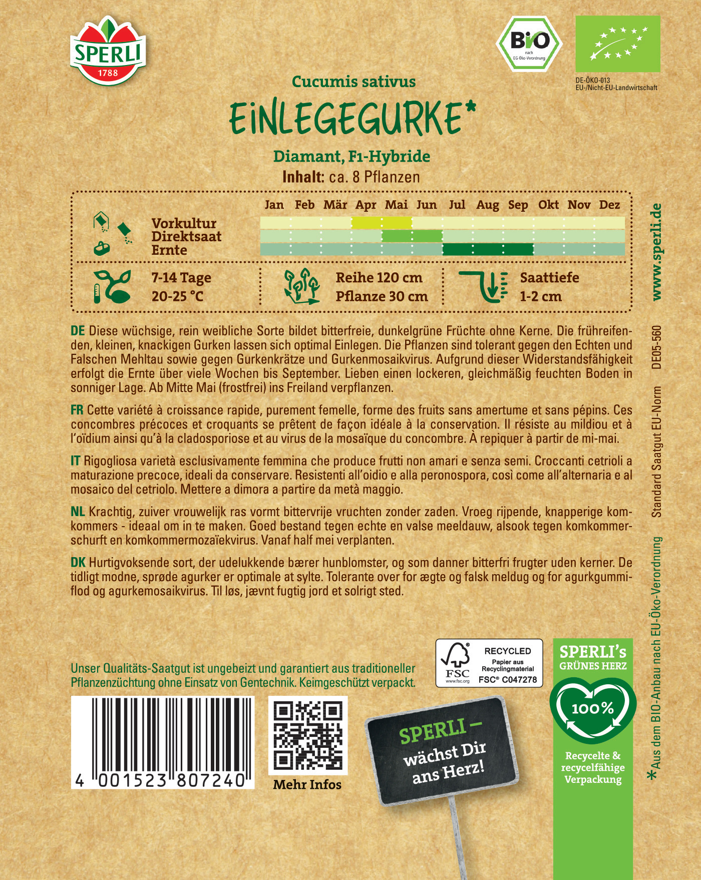 | Kurzbezeichnung : | BIO Einlegegurke Diamant, F1 |