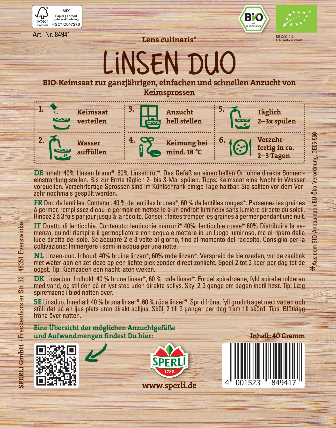 Produktinformationen "BIO Keimsprossen-Saat Linsen Duo"