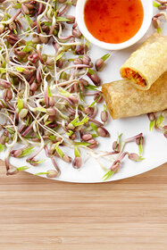 Die Sprossen der Mungbohnen schmecken leicht süßlich bis nussig. Sie eignen sich ins besondere für asiatische Gerichte. Wir empfehlen Dir die Kultur im Keimgarten. Bereits nach 3-5 Tagen sind die Keimsprossen erntereif.| Kurzbezeichnung : | BIO Keimsprossen-Saat Mungbohnen |