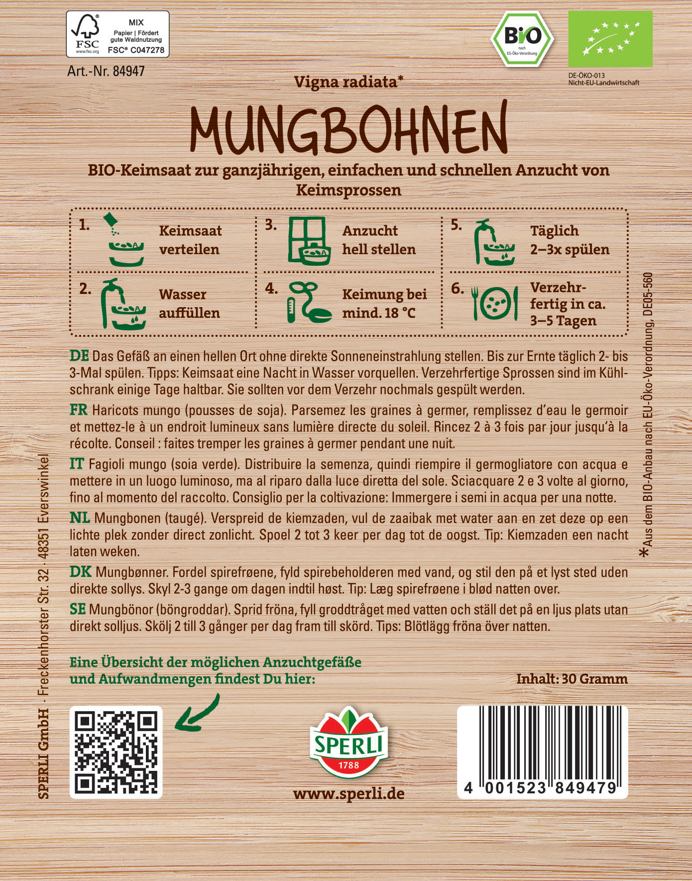 Produktinformationen "BIO Keimsprossen-Saat Mungbohnen"