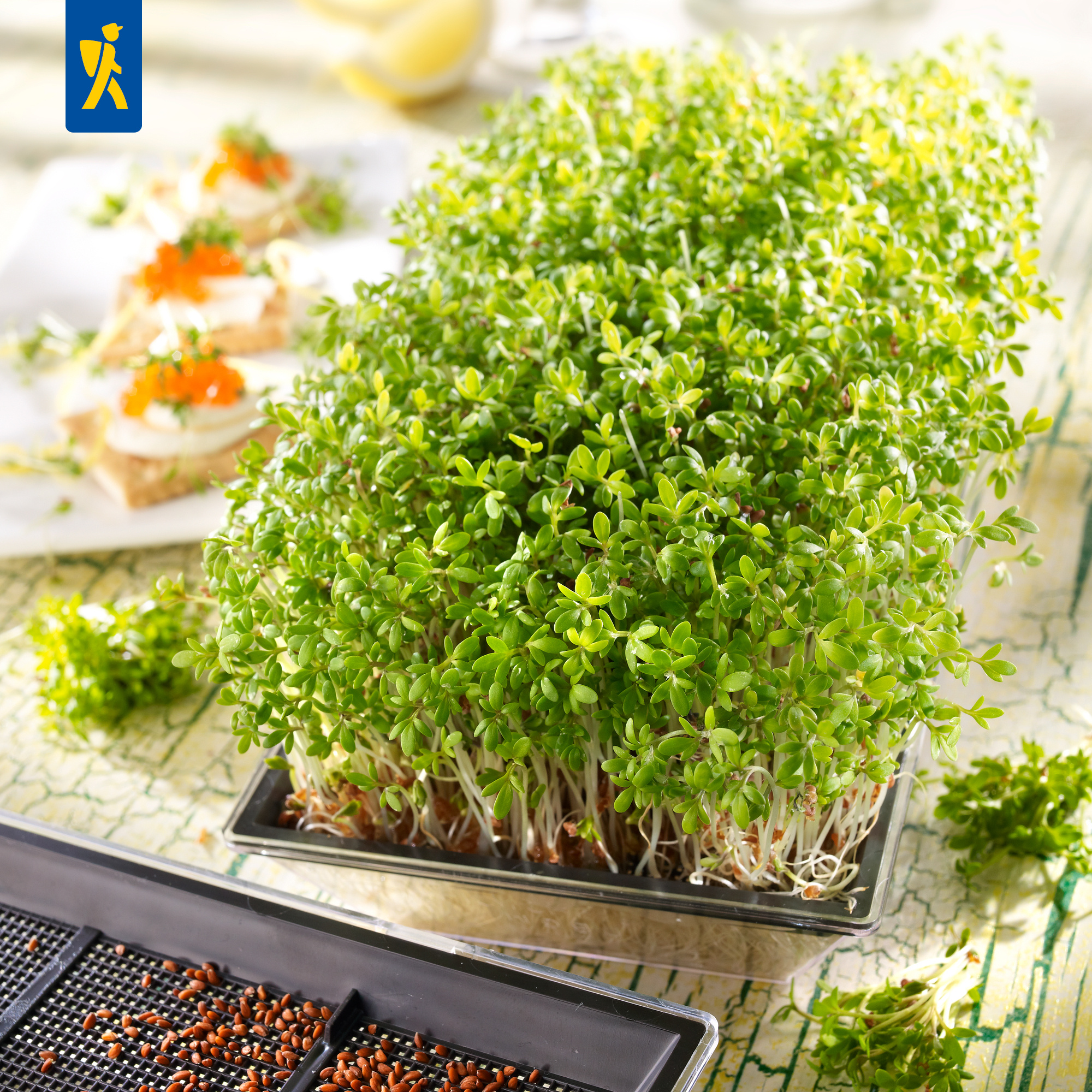 Die BIO-Kresse 'Einfache' ist glattblättrig, schnellwachsend und leicht zu kultivieren. Ideal für die Anzucht von Microgreens im Zimmer, aber auch für Beete und Töpfen. Ihre vitaminreichen, pikant-pfeffrigen Blätter verleihen vielen Gerichten das gewisse Etwas und sind eine hervorragende Wahl für einen gesunden Snack. Genießen Sie die Vorteile dieser gesunden Pflanze, die mit ihrem frischen Geschmack jedes Essen bereichert. Sie ist nicht nur eine großartige Küchenkraft, sondern auch ein lebendiges Element für Ihr Zuhause. Mit ihrer hohen Keimrate und schnellen Ernte ist BIO-Kresse 'Einfache' eine wunderbare Ergänzung für jeden Garten. Gönnen Sie sich die gesunden Vorzüge der BIO-Kresse 'Einfache'!| Kurzbezeichnung : | BIO Kresse Einfache |