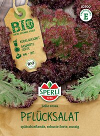Der BIO-Pflücksalat 'Lolla Rossa' von SPERLI ist ein roter Pflücksalat mit gekrausten, leicht geschlitzten Blättern. Er sieht nicht nur verlockend aus, sondern schmeckt auch angenehm nussig. Wenn Du bei der Ernte nur die Blätter entfernst, bleibt das grüne Herz bestehen, wodurch im Zeitraum von Mai bis Oktober eine fortwährende Ernte möglich ist.