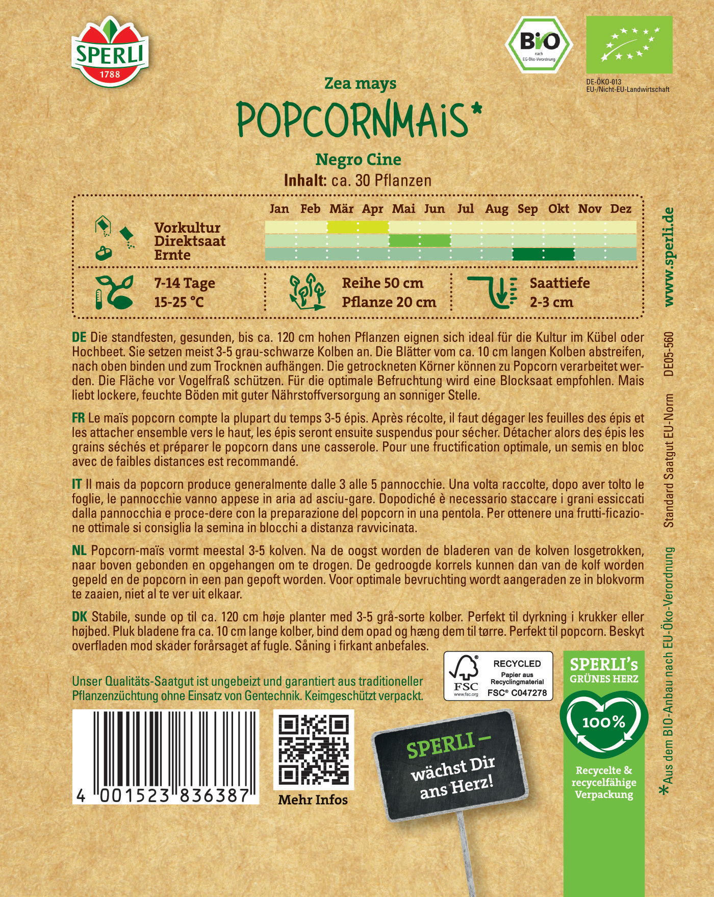 | Kurzbezeichnung : | BIO Popcornmais Negro Cine |
