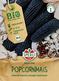 Wenn auch Du Popcorn liebst und gern einmal selber Popcornmais anbauen möchtest, solltest Du einen Blick auf unseren BIO-Popcornmais 'Negro Cine' werfen. Die Sorte setzt meist 3 bis 5 Kolben pro Pflanze an und ist sehr gesund und standfest mit einem nussig-aromatischen Geschmack. Eine Besonderheit ist zweifellos die Farbe der Maiskörner, die von Dunkelblau bis Grauschwarz variiert.