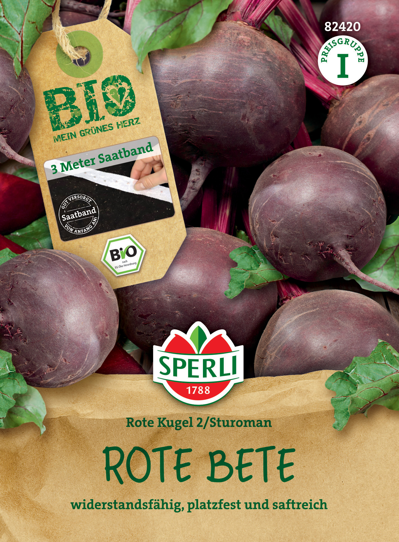 | Kurzbezeichnung : | BIO Rote Bete Rote Kugel 2/Sturoman, Saatband |