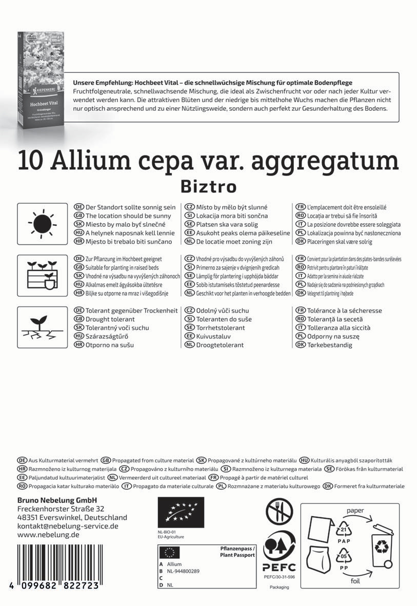 | Kurzbezeichnung : | BIO Schalotte Biztro, Gr. 7/14 |