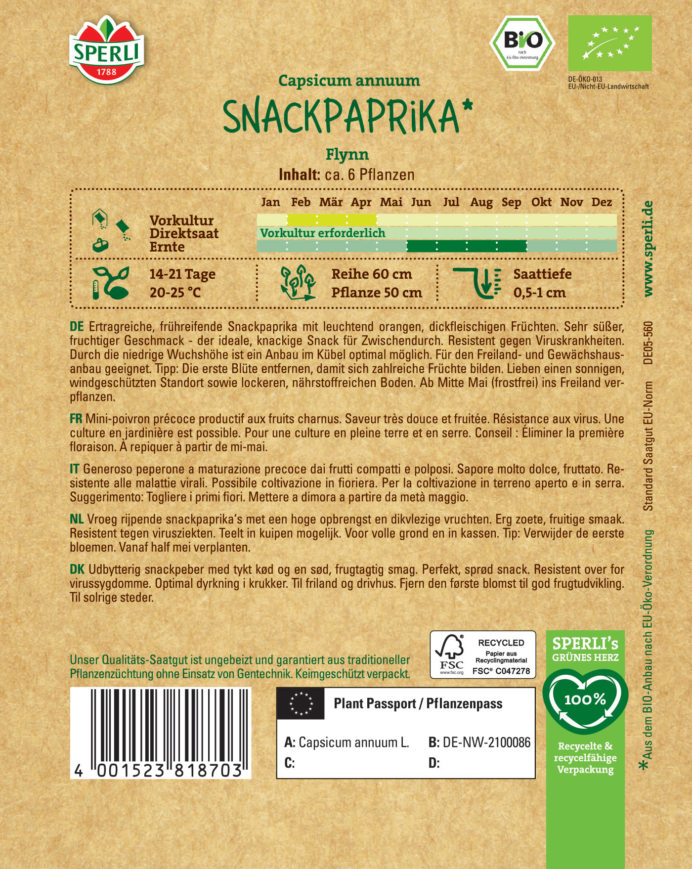| Kurzbezeichnung : | BIO Snackpaprik Flynn |