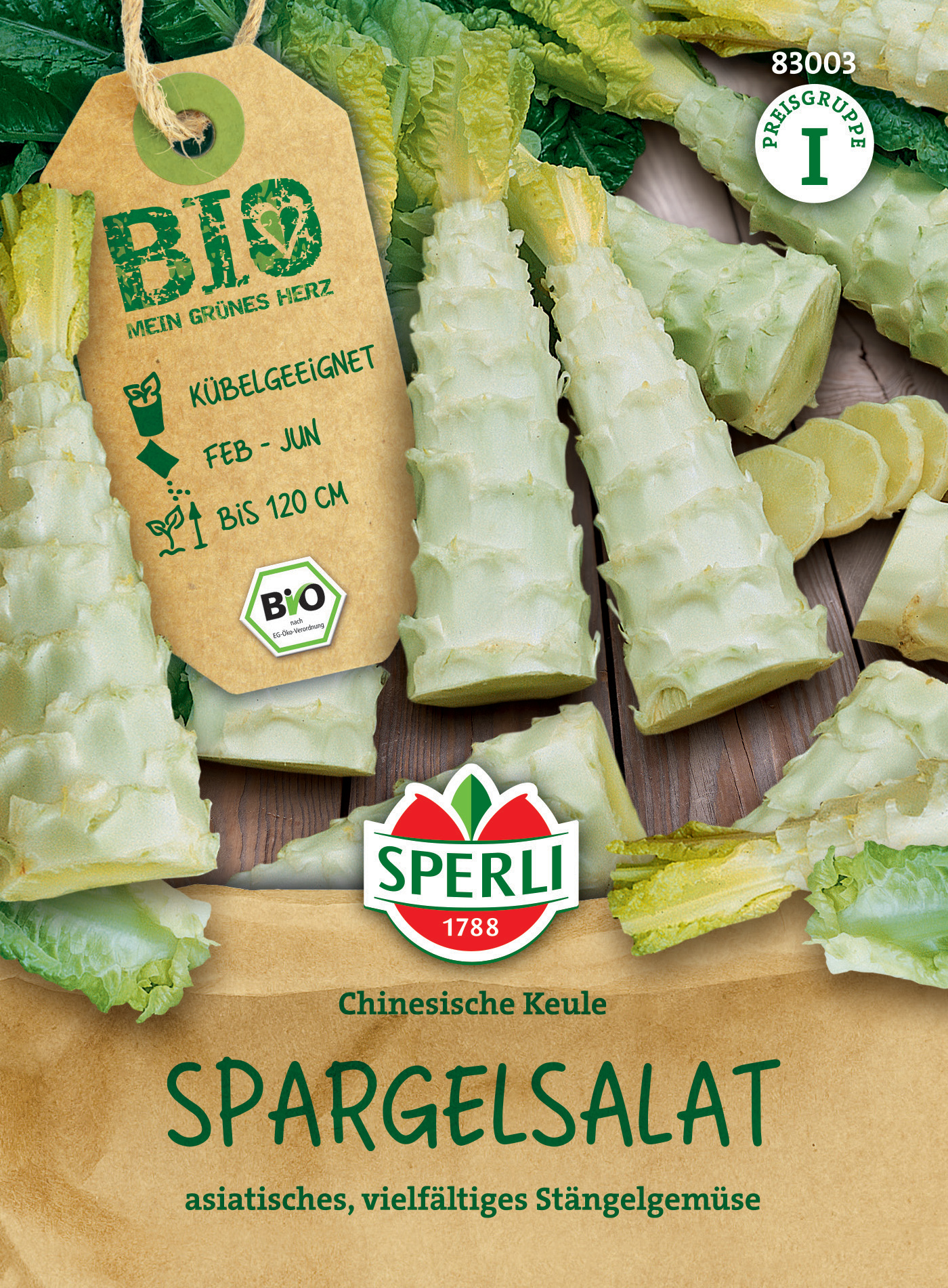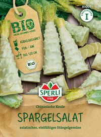 Bei dem BIO-Spargelsalat 'Chinesische Keule' handelt es sich um eine alte chinesische Kulturpflanze, die hierzulande eine echte Seltenheit ist. Sowohl die Blätter als auch die Strünke kannst Du in der Küche verwenden, wobei Du erstere während des Rosettenstadiums und letztere vor der Blüte ernten solltest. Die Strünke sind dann etwa 2 bis 3 cm dick und können wie Spargel zubereitet werden – lecker!