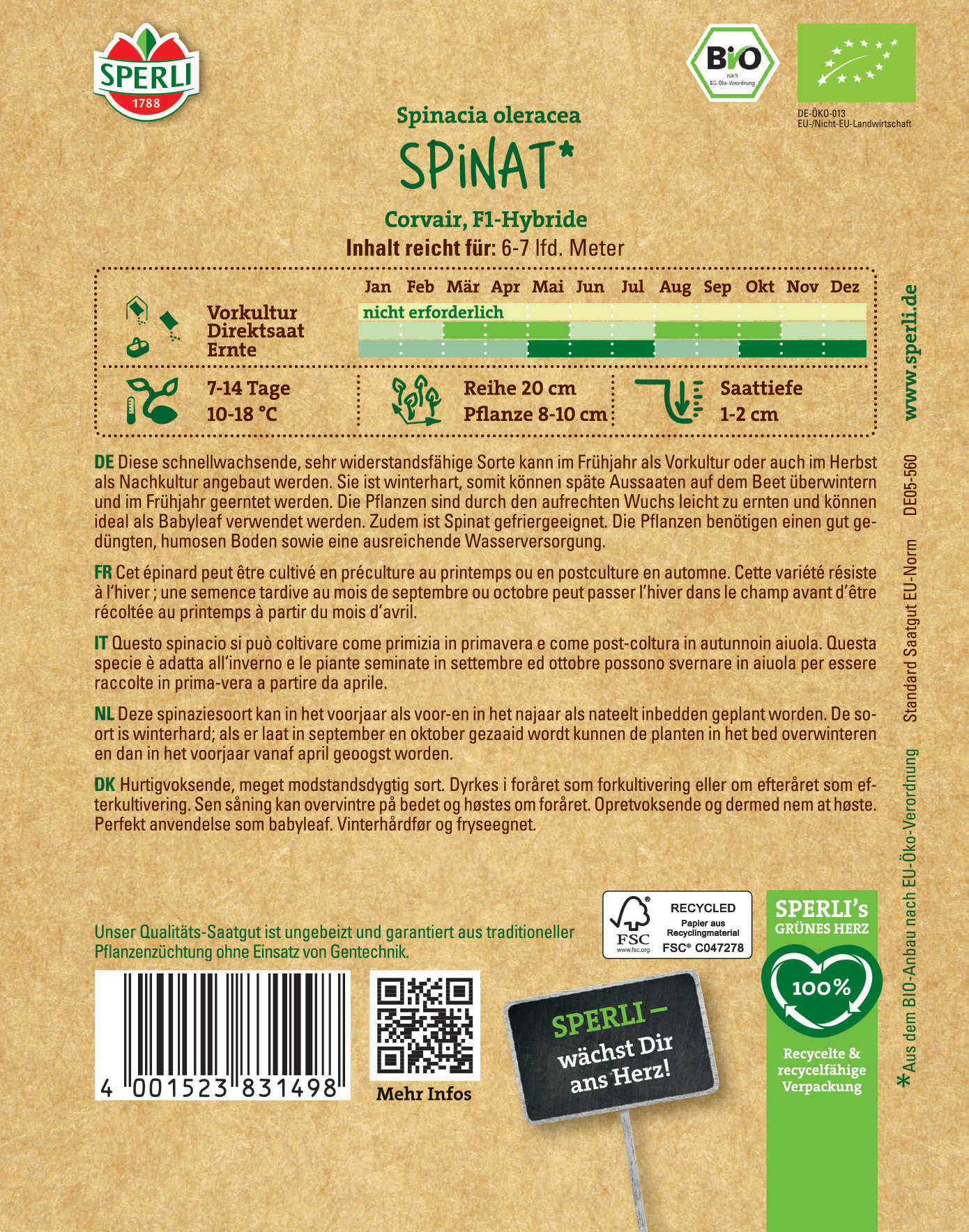| Kurzbezeichnung : | BIO Spinat Corvair, F1 |