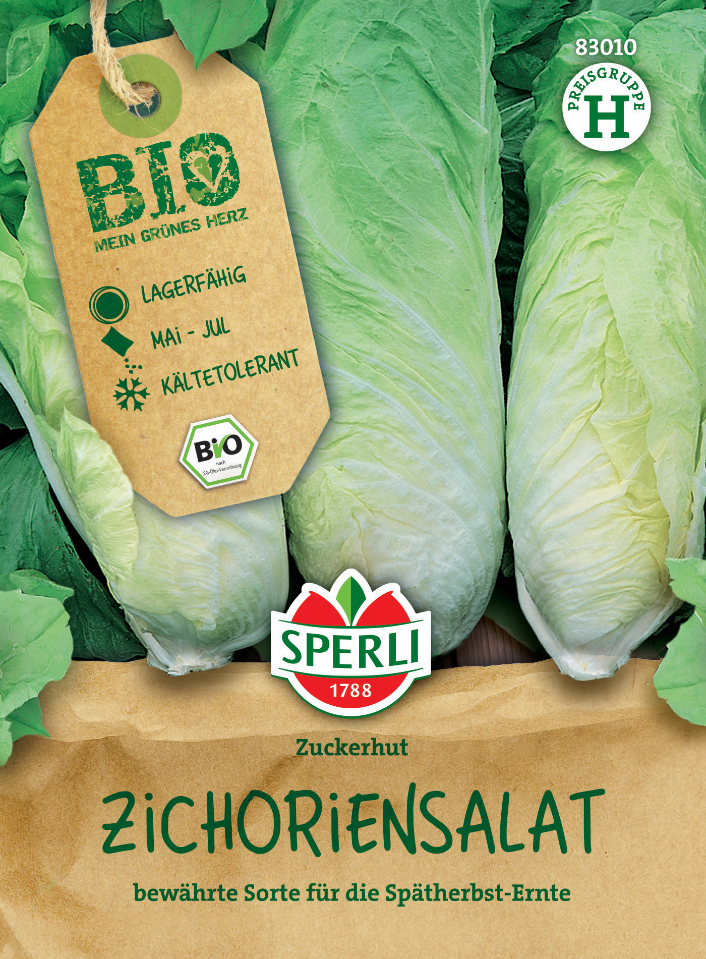 Mit dem BIO-Zichoriensalat 'Zuckerhut' von SPERLI erhältst Du nicht nur einen kältetoleranten, sehr gut lagerfähigen Zichoriensalat mit tütenförmigen Köpfen, sondern auch ein echtes BIO-Produkt! Denn das Saatgut wurde aus Mutterpflanzen gewonnen, die aus zertifiziertem BIO-Anbau stammen. Von Juni bis Juli kannst Du es an einem sonnigen oder halbschattigen Platz in humose, nährstoffreiche Erde ausbringen.