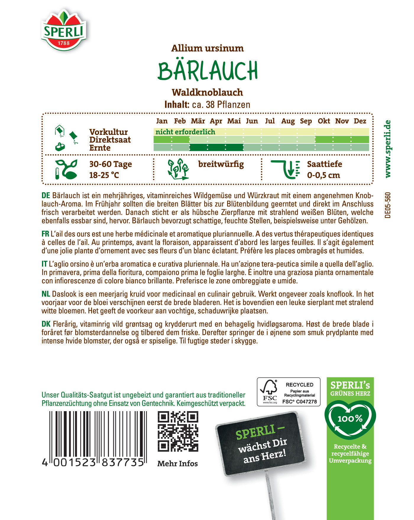 | Kurzbezeichnung : | Bärlauch Waldknoblauch |