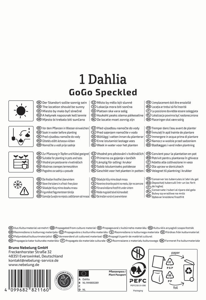 | Kurzbezeichnung : | Beet- & Kübel-Dahlie Go Go Speckled |