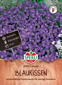 SPERLI's Azzurro ist eine frühblühende Steingarten-Polsterstaude mit kräftig bläulich lilafarbenen Blüten. Bestens geeignet zur Bepflanzung von Mauern, Treppen, Beeten, Rabatten und Töpfen. Die winterharten Pflanzen sind sehr genügsam, im Frühjahr nur sparsam düngen und mäßig wässern im Sommer. Rückschnitt am besten im Herbst außerhalb der Vegetationsperiode durchführen. In sehr harten Wintern ist eine Abdeckung zu empfehlen. SPERLI's Azzurro ist trockenresistent, verträgt keine Staunässe.| Kurzbezeichnung : | Blaukissen SPERLI's Azurro |