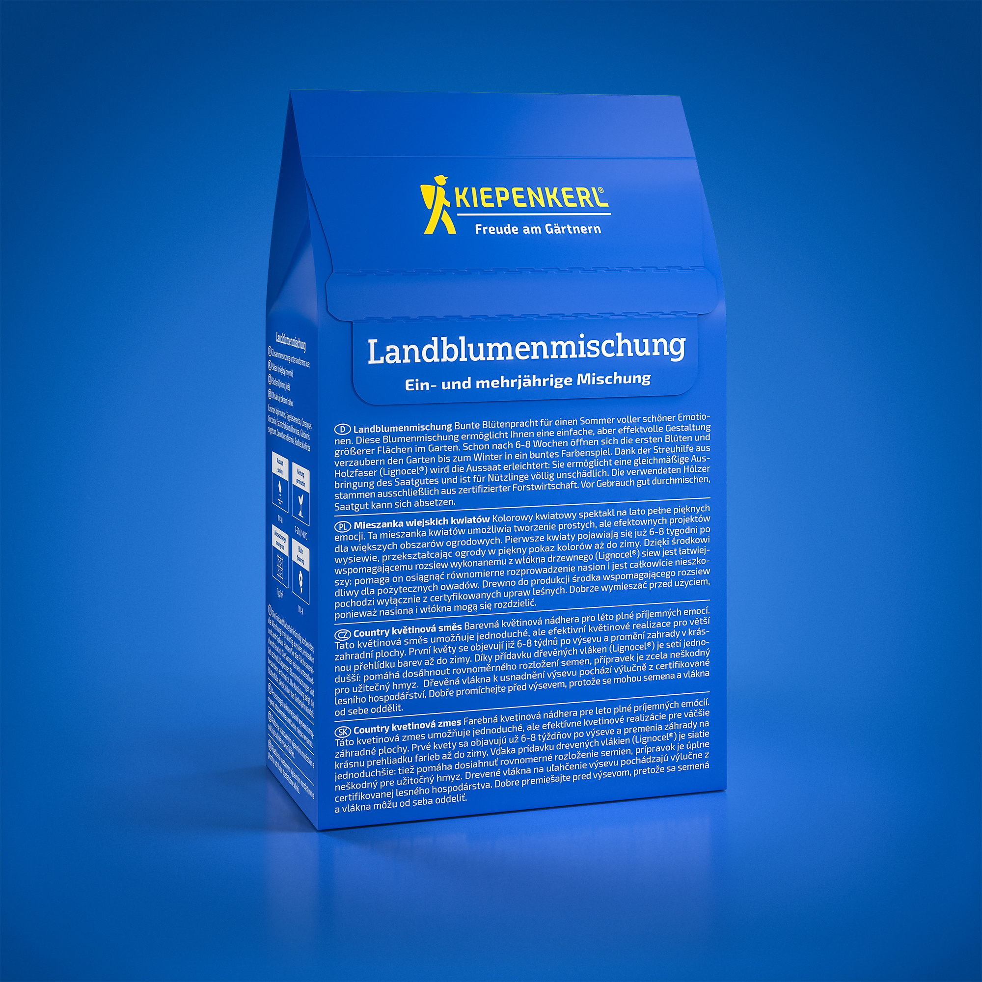 Verwandeln Sie Ihren Garten in ein blühendes Paradies mit unserer Landblumenmischung. Diese farbenfrohe Mischung sorgt für ein intensives Blütenmeer und bringt den Sommer direkt vor Ihre Haustür. Innerhalb von nur 6-8 Wochen öffnen sich die ersten Blüten und verwandeln Ihren Garten bis zum Winter in ein buntes Farbenspiel. Die Pflanzen erreichen eine Höhe von 50-120 cm und sind ideal für die effektvolle Gestaltung größerer Flächen geeignet. Die Streuhilfe aus Holzfaser (Lignocel®) erleichtert die Aussaat erheblich und sorgt für eine gleichmäßige Verteilung des Saatgutes. Die verwendeten Hölzer stammen aus zertifizierter Forstwirtschaft und sind sowohl umweltfreundlich als auch unschädlich für Nützlinge. Für ein gleichmäßiges Ergebnis vor der Aussaat gut durchmischen. Erleben Sie die Freude am Gärtnern mit unserer Landblumenmischung und schaffen Sie einen Garten voller schöner Emotionen.| Kurzbezeichnung : | Blumenmischung Landblumenmischung |