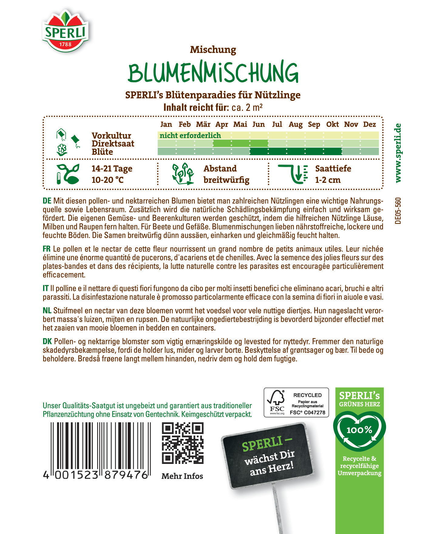 | Kurzbezeichnung : | Blumenmischung SPERLI's Blütenparadies für Nützlinge |