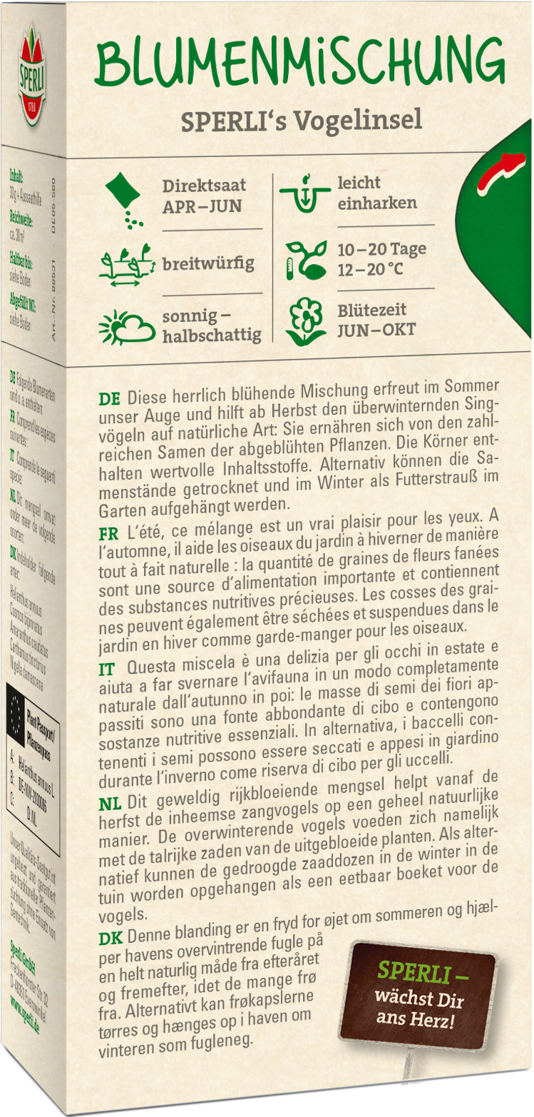 Produktinformationen "Blumensamen-Mischung SPERLI's Vogelinsel"