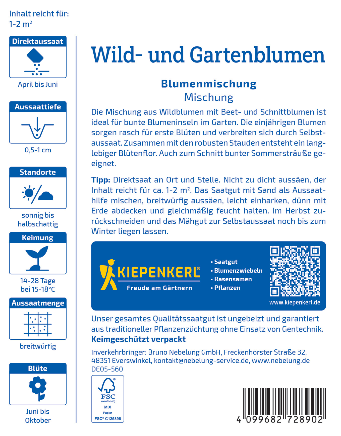 Produktinformationen "Blumensamen-Mischung Wild und Gartenblumen"