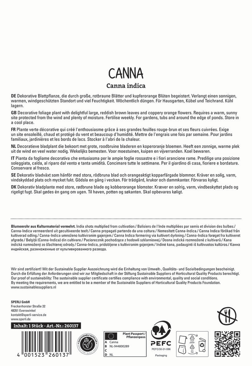 Botanische Bezeichnung : | Canna x Hybrida |