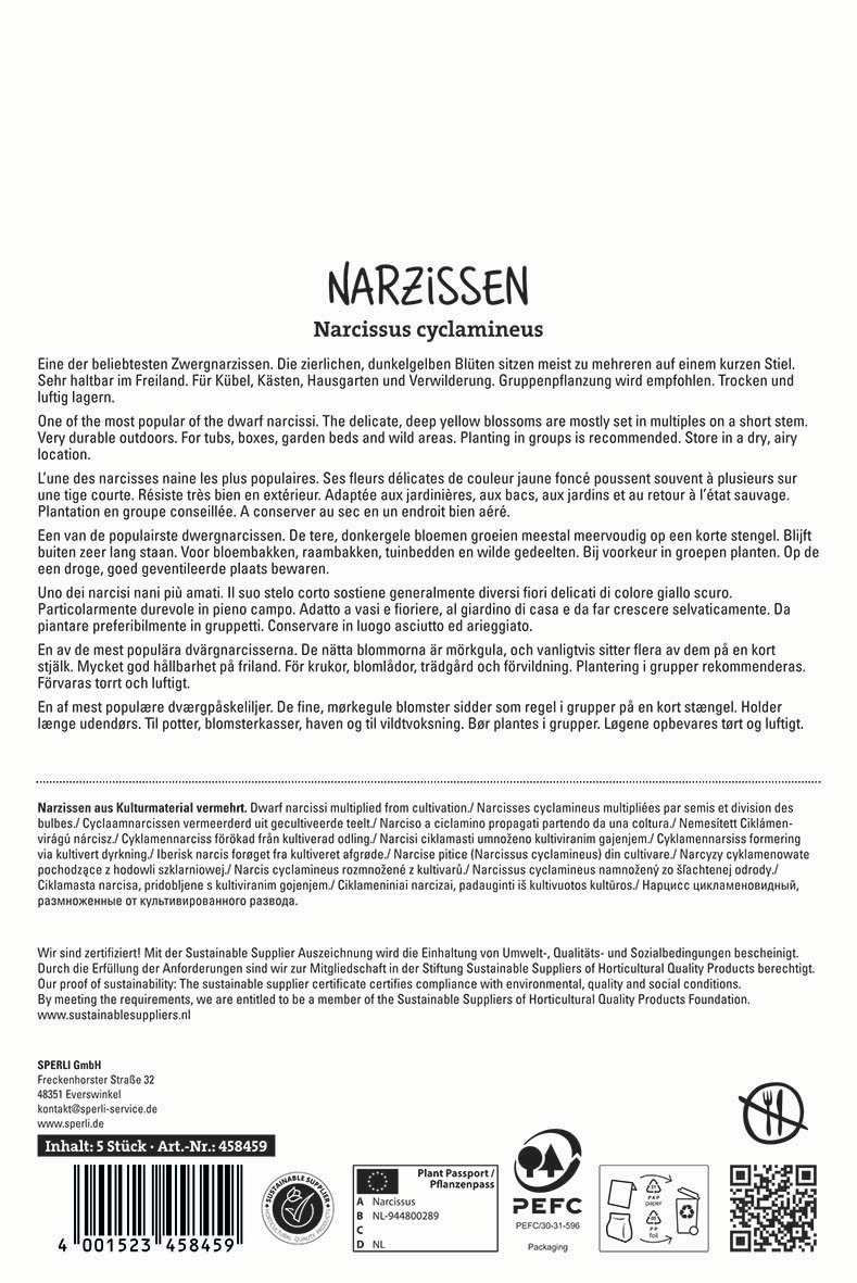 | Botanische Bezeichnung : | Narcissus cyclamineus |