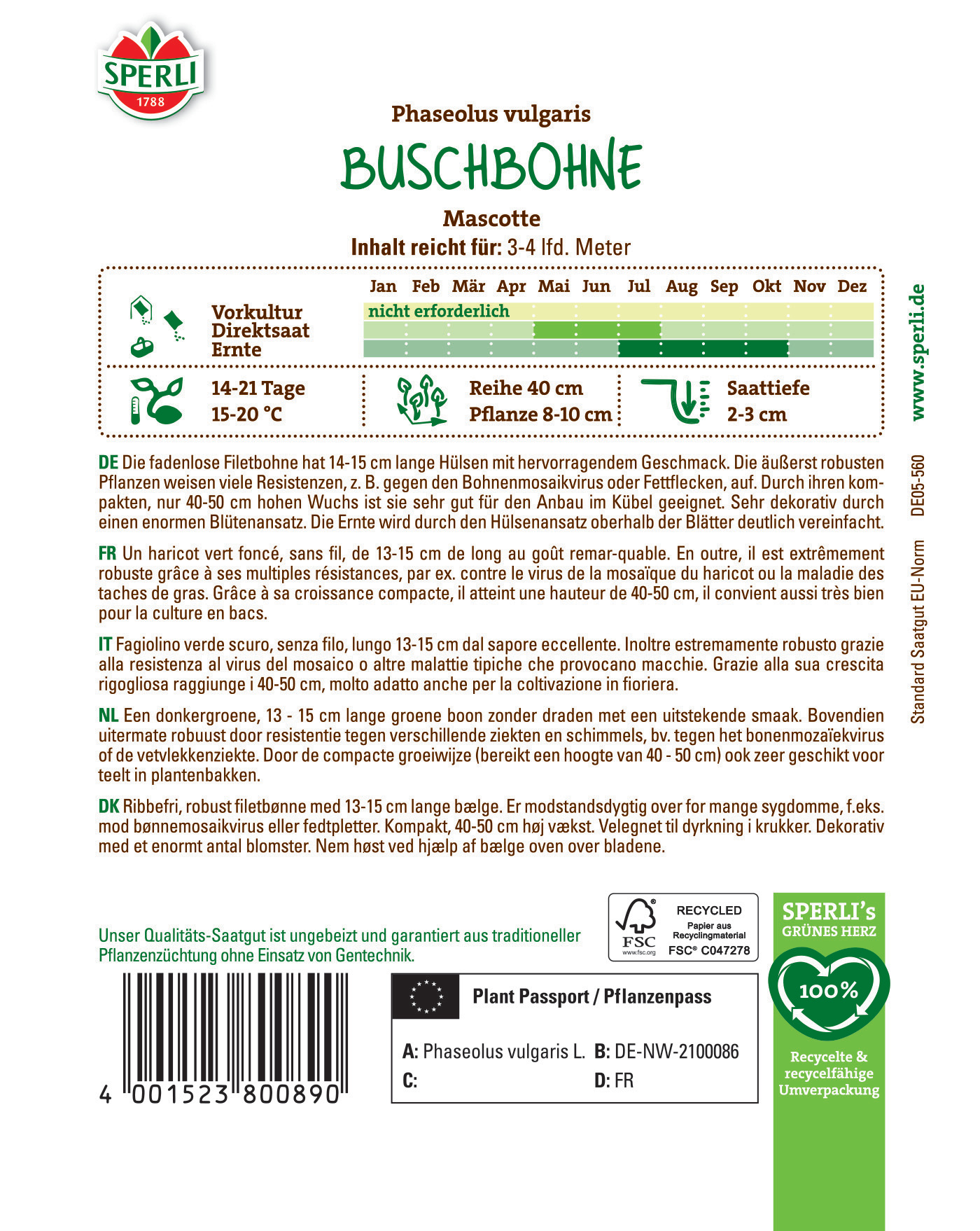 | Kurzbezeichnung : | Buschbohne Mascotte |