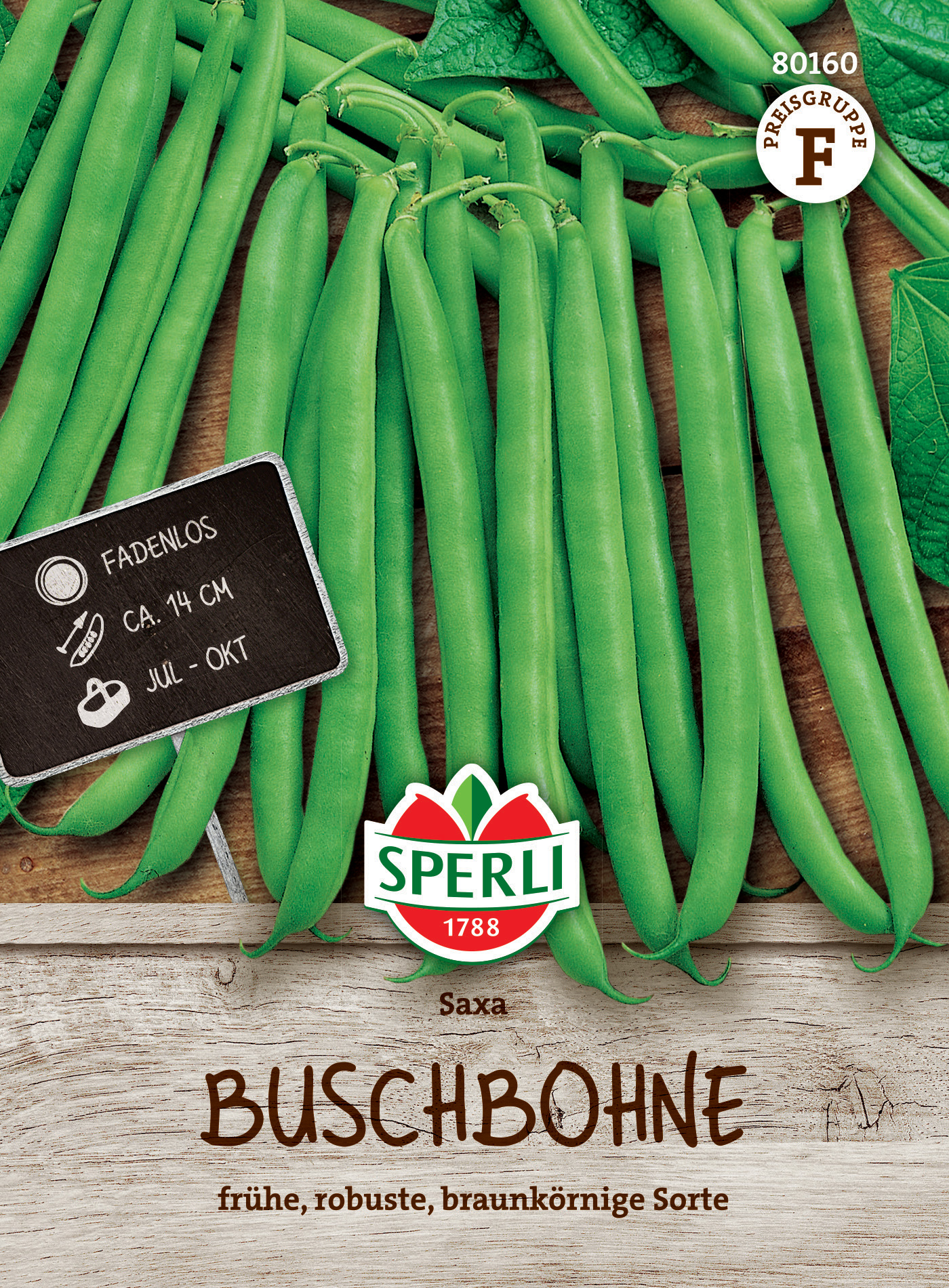 Du möchtest Dir die wohl bekannteste Bohnensorte in den eigenen Garten holen? Dann ist die Buschbohne 'Saxa' perfekt für Dich geeignet. Nicht ohne Grund ist sie in allen Anbaugebieten so beliebt. Ihre Hülsen sind zart haben eine Länge zwischen 12 cm und 14 cm. Sie sind fadenlos und haben eine appetitliche grüne Farbe. Im Gegensatz dazu sind die Körner braun.