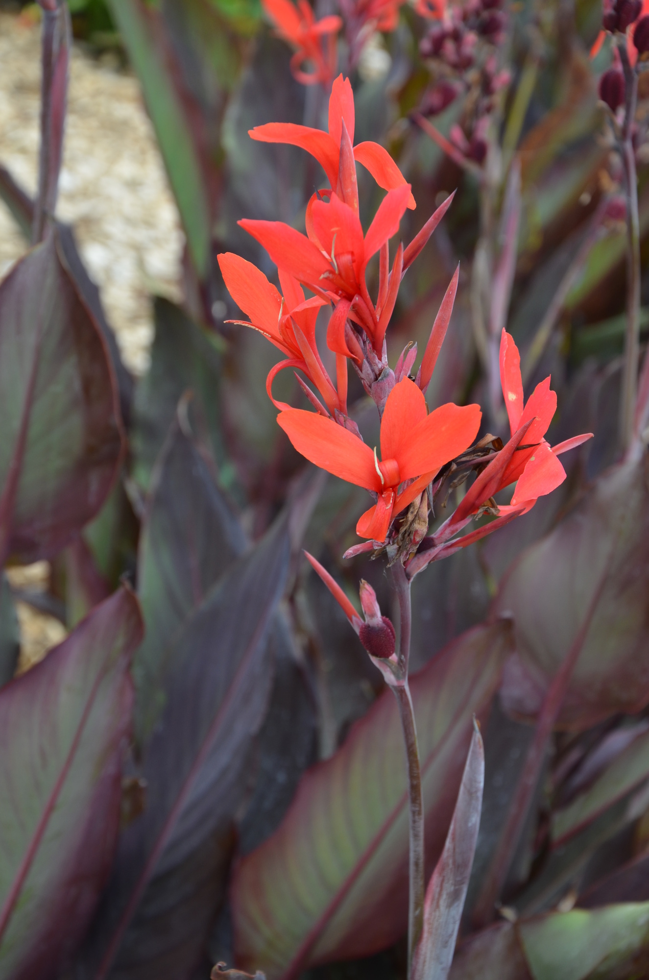 Farbbeschreibung: Blüten rot, Blätter dunkelrot, violett-grünDer eigentliche Zierwert bei Cannas sind nicht nur die Blüten, sondern zusätzlich die großen grünen, braunroten oder bunten panaschierten Laubblätter. Sie sind schnellwüchsige, exotische, sommerblühende Schmuckpflanzen und bringen in jedem Pflanzgefäß oder Beet Höhe sowie Dynamik. Viele Sorten werden auch gerne von Insekten als Nahrungsquelle genutzt. Cannas verlangen einen vollsonnigen, eher windgeschützten Standort in nährstoffreichem, humosem Boden, der immer gut feucht sein sollte. Trockenheit tolerieren die Pflanzen im Spätsommer kurzzeitig sehr gut. Durch eine Vorkultur ab Ende Februar kann die Blütezeit deutlich verfrüht werden.