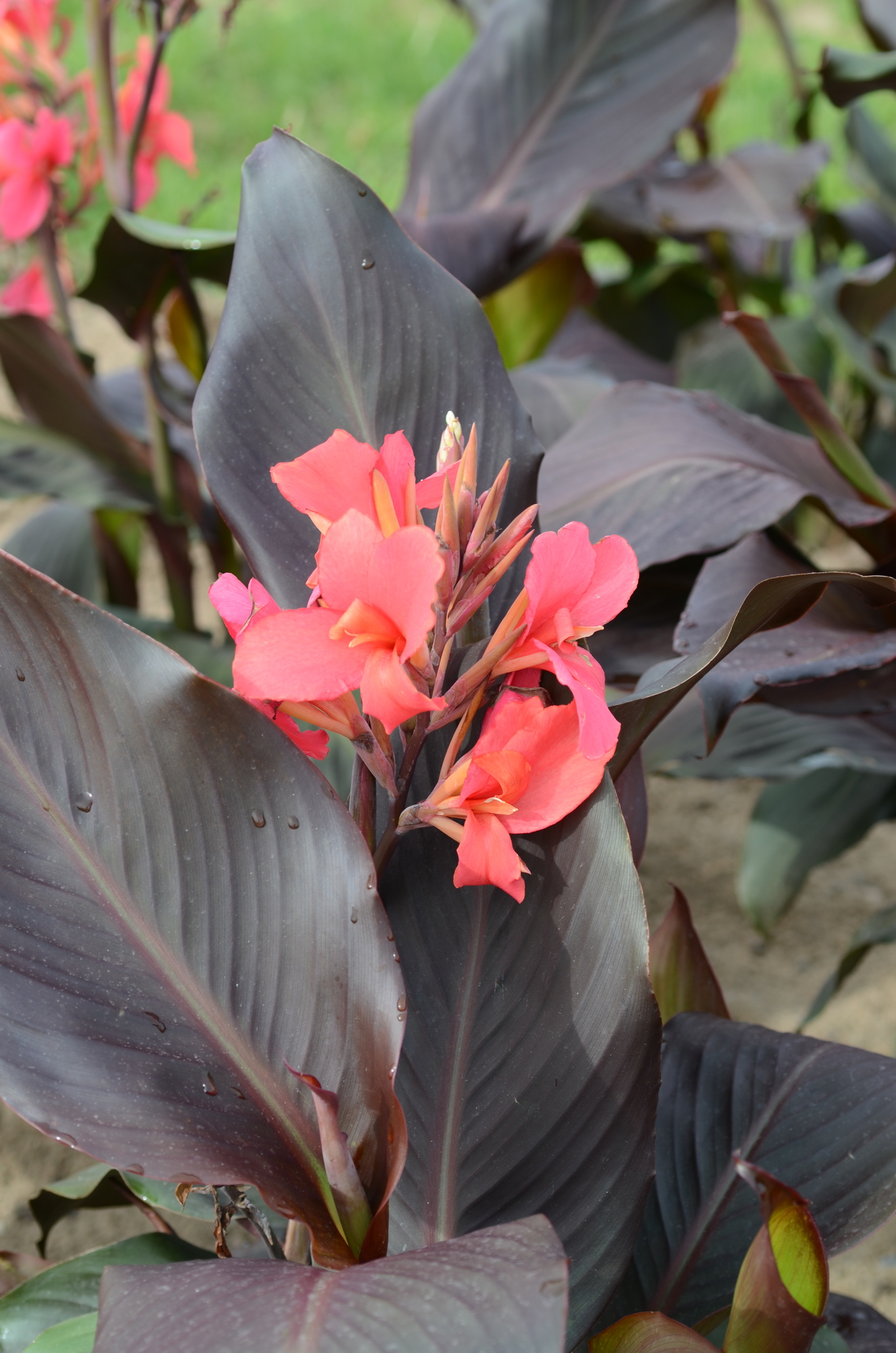 Farbbeschreibung: Blüten korallrosa, Blätter dunkelrotDer eigentliche Zierwert bei Cannas sind nicht nur die Blüten, sondern zusätzlich die großen grünen, braunroten oder bunten panaschierten Laubblätter. Sie sind schnellwüchsige, exotische, sommerblühende Schmuckpflanzen und bringen in jedem Pflanzgefäß oder Beet Höhe sowie Dynamik. Viele Sorten werden auch gerne von Insekten als Nahrungsquelle genutzt. Cannas verlangen einen vollsonnigen, eher windgeschützten Standort in nährstoffreichem, humosem Boden, der immer gut feucht sein sollte. Trockenheit tolerieren die Pflanzen im Spätsommer kurzzeitig sehr gut. Durch eine Vorkultur ab Ende Februar kann die Blütezeit deutlich verfrüht werden.