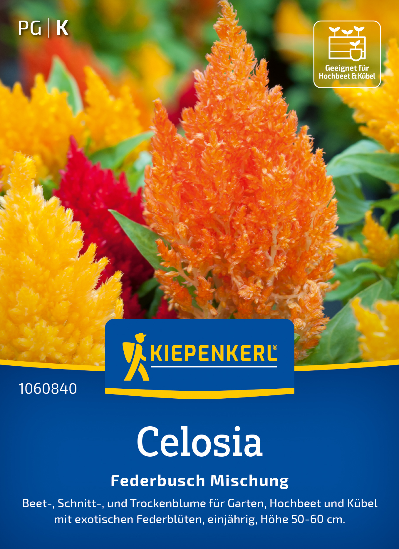 Die Celosia 'Federbusch Mischung' bringt mit extravaganten, gefärbten Blüten in flammenden Tönen ein exotisches Flair in Ihr Beet oder Kübel. Diese einjährigen Pflanzen erreichen eine Höhe von 50 bis 60 cm und sind perfekt für abwechslungsreiche Arrangements. Dank ihrer langen Blühdauer eignen sie sich auch hervorragend als Schnitt- oder Trockenblumen. Erfreuen Sie sich an den lebhaften Farben und der pflegeleichten Handhabung dieser Pflanzen, die jede Gartengestaltung aufwerten. Bringen Sie den Hauch von Exotik in Ihre Gartenplanungen und verwandeln Sie Ihren Außenbereich in ein farbenfrohes Paradies voller Lebensfreude!| Kurzbezeichnung : | Celosia Federbusch Mischung |