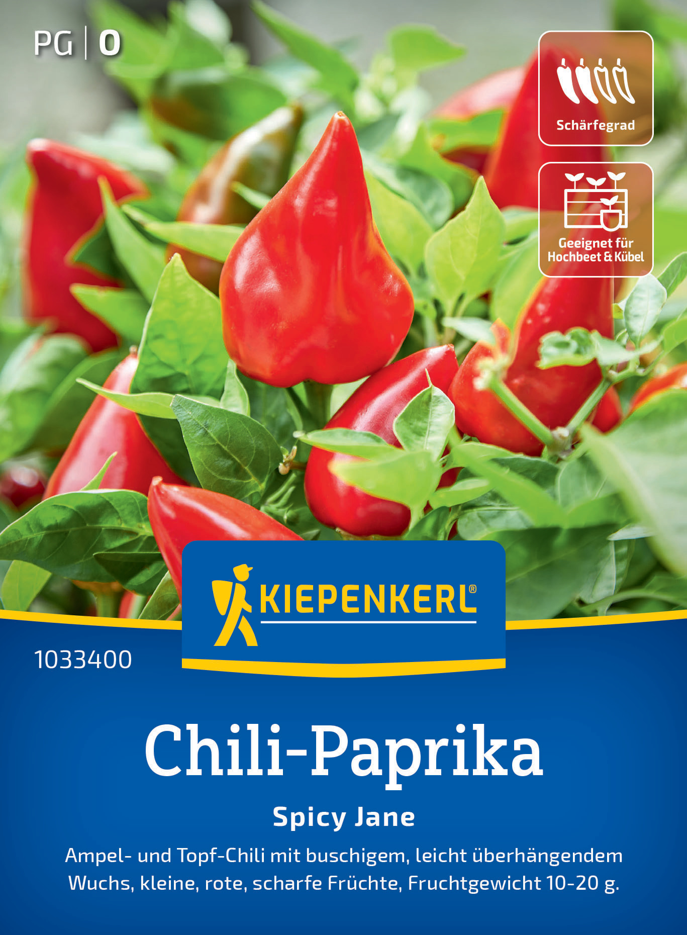 Die Chilipaprika 'Spicy Jane' produziert kleine, 10-20 g schwere Früchte, die von Grün nach Rot reifen. Diese Chilis haben eine pikante Schärfe, wobei die roten Früchte die beste Würzkraft aufweisen. Ideal für die Verwendung in kleinen Mengen frisch oder getrocknet, sind die kompakten Pflanzen mit leicht überhängendem Wuchs perfekt für Ampel, Balkonkästen, Kübel oder Hochbeet. Die Wuchshöhe beträgt 40 bis 60 cm. Fügen Sie mit 'Spicy Jane' einen würzigen Kick zu Ihren Gerichten hinzu! Genießen Sie den frischen Geschmack und die Vielfalt, die diese Chili in Ihre Küche bringt. Entdecken Sie die Chilipaprika 'Spicy Jane' und bringen Sie mehr Würze in Ihr Leben!| Kurzbezeichnung : | Chili-Paprika Spicy Jane, F1 |