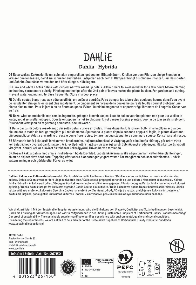 Botanische Bezeichnung : | Dahlia x Hybrida |