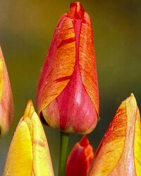 Farbbeschreibung: Warme Gelborange-, Pfirsich- und Himbeertöne in unterschiedlicher Zeichnung und Intensität.| Kurzbezeichnung : | Darwin-Hybrid-Tulpen Gudoshnik |