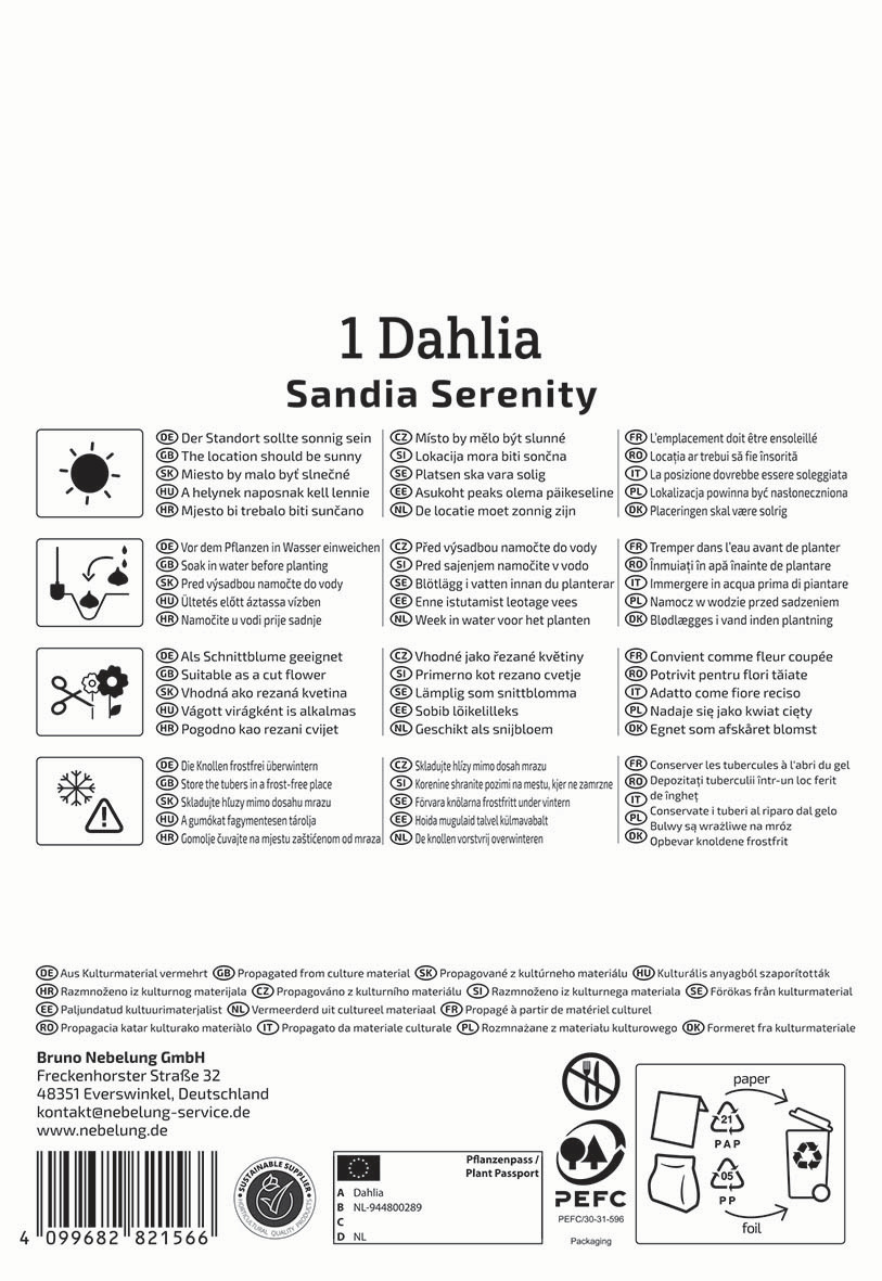 | Kurzbezeichnung : | Dekorative Dahlie Sandia Serenity |
