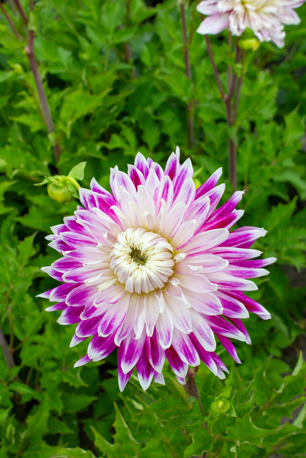 Farbbeschreibung: Weiß mit lila-rosa FlammungBlütendurchmesser: 20 cm - 25 cm