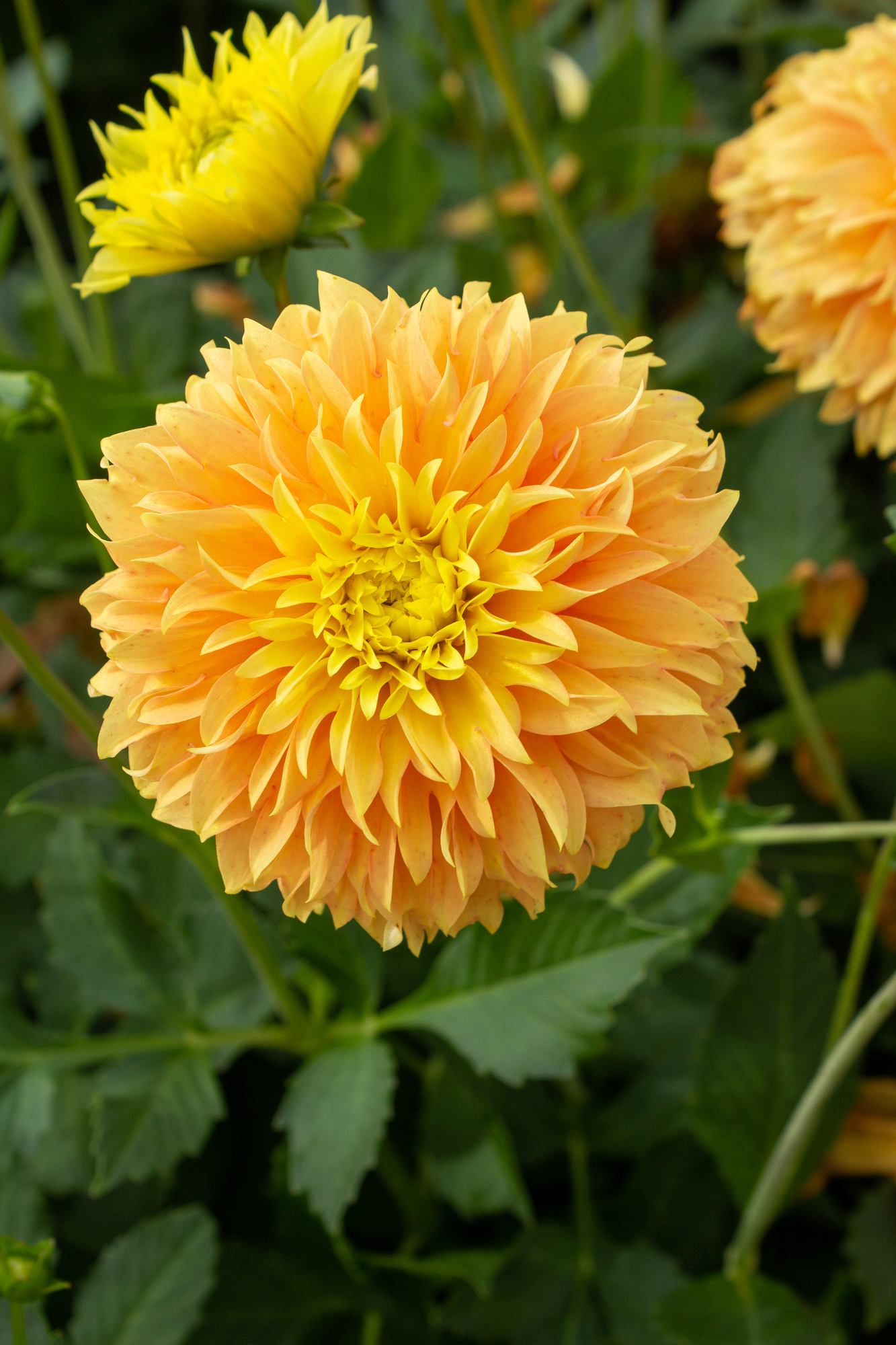 Farbbeschreibung: Gelbes Zentrum, nach außen apricot - orange; Blütenblätter eingeschlitztBlütendurchmesser: 10 cm - 15 cm