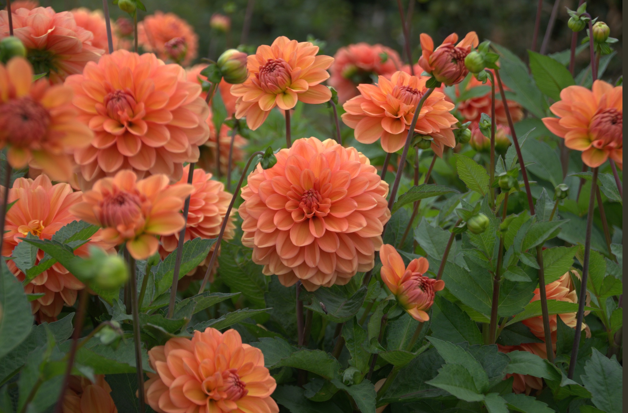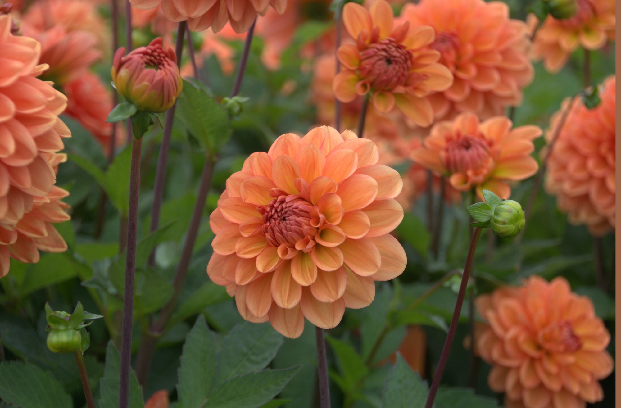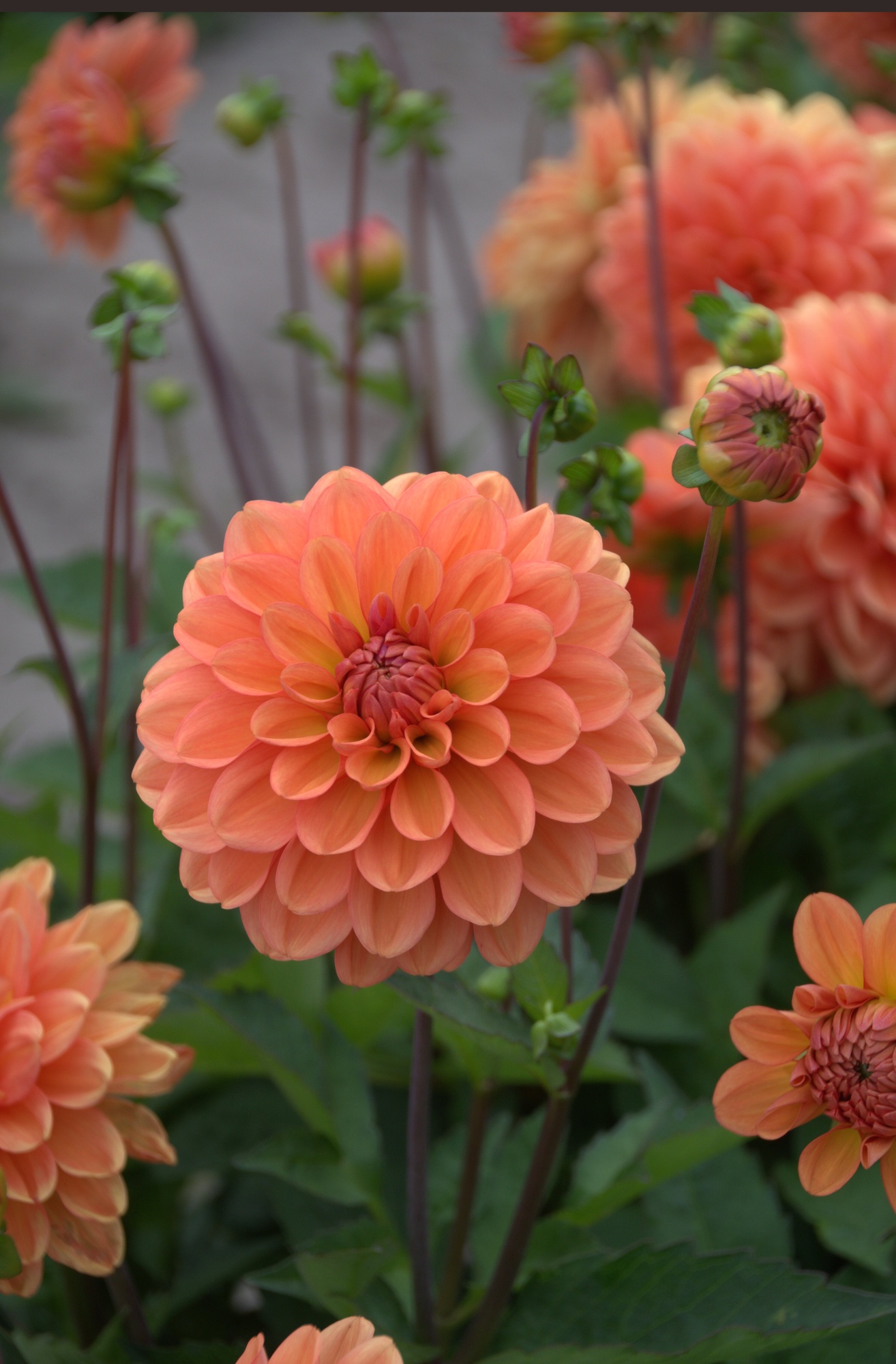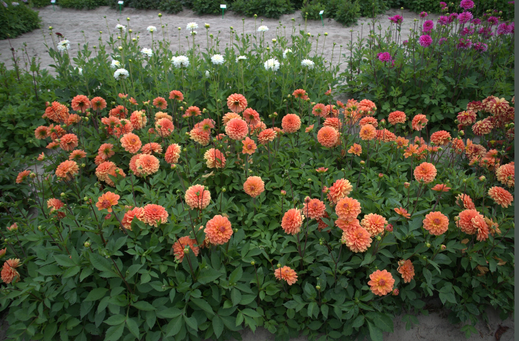 Farbbeschreibung: Pfirsich-orange; sehr kompakt wachsend und großblumig| Kurzbezeichnung : | Dekorative Dahlien Go Go Orange |