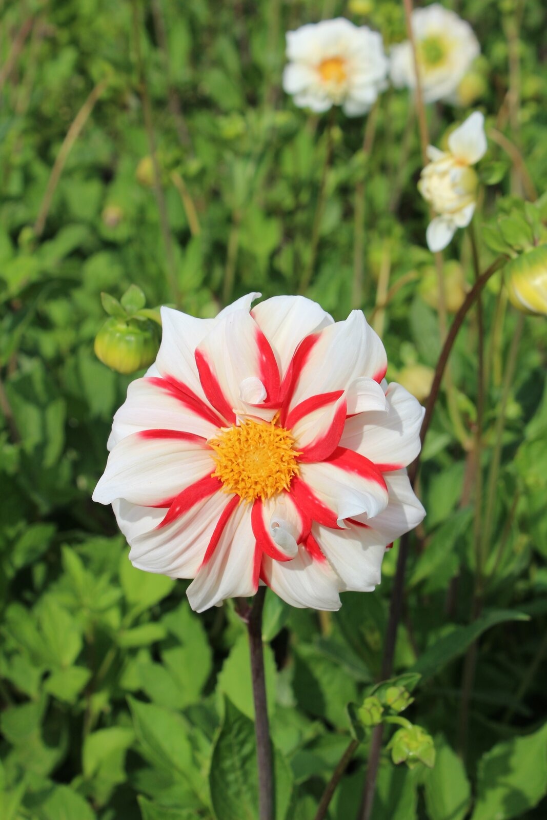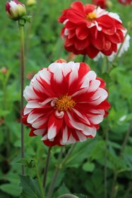 Farbbeschreibung: Changiert rot-weiß, päonienblütigBlütendurchmesser: 5 cm - 10 cm