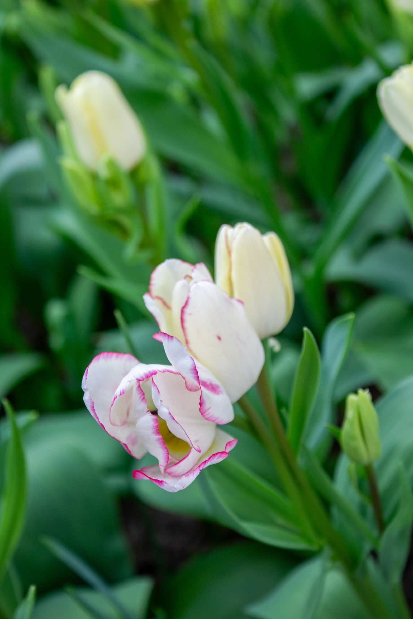 Die Blüten sind zu Beginn Cremeweiß und nur leicht in Pink gezeichnet. Im Aufblühen verändert sich die Farbe zu Reinweiß und die Zeichnung verteilt sich über die gesamten Blütenblätter in einem kräftigen Rosa. Die Club-Serie ist mehrblütig.| Kurzbezeichnung : | Einfache Späte Tulpen Candy Club |
