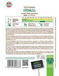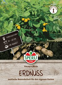 Erdnüsse sind eine botanische Besonderheit. Nachdem die gelben Blüten befruchtet wurden, bohrt sich die junge Frucht in den Boden und entwickeln sich dort. Die Erdnüsse können nach einer Kulturzeit von etwa 180 bis 200 Tagen geerntet werden.| Kurzbezeichnung : | Erdnuss Jimmy's Pride |