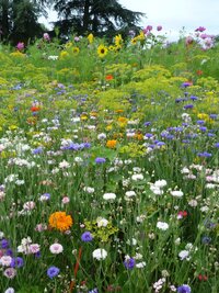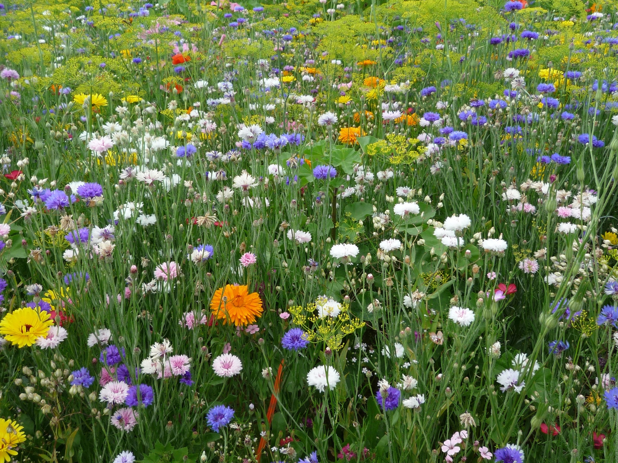 Neue Mischung in sanften weiß und lila Tönen ergänzt mit ein wenig rot. Ein großer Anteil der verwendeten Arten gab es schon in den letzten Jahrhunderten und wurden schon im Mittelalter geschätzt, wie z.B. Kornblumen, Ringelblumen, blauer Leinen und Jungfrau im Grünen. Diese einjährige, leuchtende Mischung ist schnellwachsend und deckt Flächen optimal ab.| Kurzbezeichnung : | Farben vergangener Zeit |